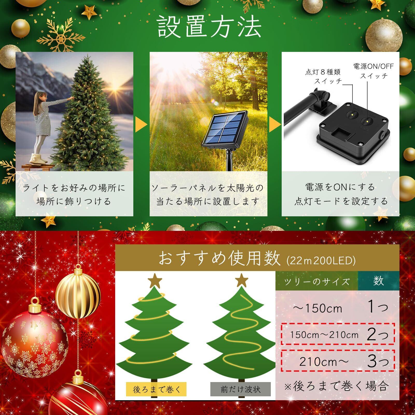 SKD イルミネーションライト ソーラーライト 1800mAh 大型パネル 最大15時間点灯 防水 200LED 20m 日本語マニュアル付 屋外 防水 ガーデン ハロウィン クリスマス (ゴールド) | hananoki