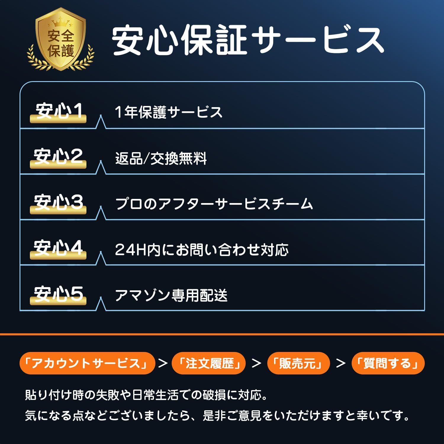 特徴 "①AGC製素材旭硝子製 ②9H硬度 ③ガイド枠付き ④指紋防止 ⑤気泡なし ⑥高透過率99.9% ⑦飛散防止 ⑧簡単貼り付け ⑨自動吸着 ⑩耐衝撃 ⑪高感度タッチ "