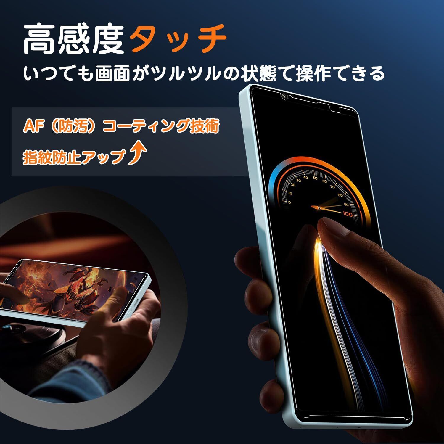 【高感度タッチ】 エクスペリア 10 VI フィルムはAF(防汚)コーティング技術を導入して、指紋や汚れなど付きにくく、皮脂や化粧品が付着しても軽くひと拭けばすぐに綺麗になり、常に鮮烈な視覚体験や極上な使用体験をお楽しみいただけます。高感度で素早いタッチ反応があり、スムーズな指滑りを実現。每年に100,000人以上の日本お客様から絶賛をいただいています。