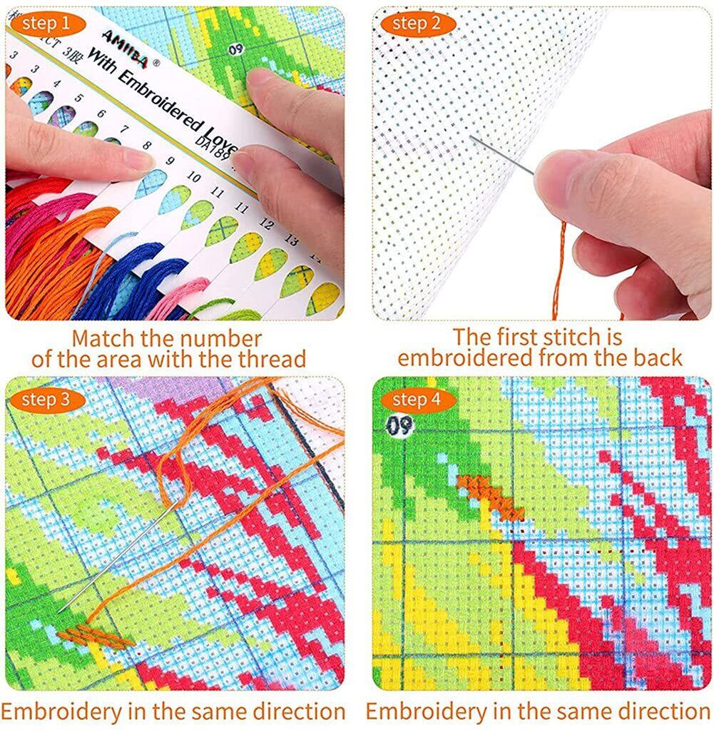 数えられたクロスステッチと比較して、スタンプされたものをより簡単に行うことができ、必要な手順も少なくなります。 初心者の方は、フルステッチとバックステッチの方法を学ぶ必要があります。 当社のキットには、英語で説明した完全な説明が付いています。 クロスステッチの初心者でも、スタンプされたクロスステッチを簡単に仕上げることができます。 自分を信じてください。 お楽しみください!