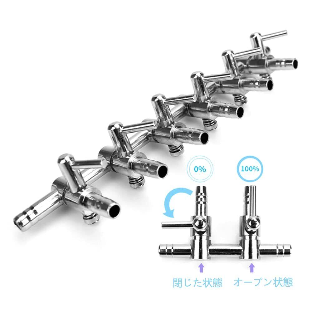 Yandong エアチューブ 分岐 水槽用 ステンレス鋼 エアバルブ 分岐管 5分岐 アクアリウム エアーチューブ 気流制御 エアレーション 分岐 インストールが容易 (2個入り)