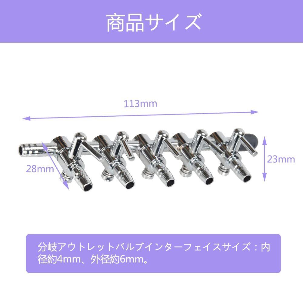 【商品サイズ】分岐アウトレットバルブインターフェイスサイズ:内径約4mm、外径約6mm。フィットエアチューブ直径:4x6mm。製品長:約11.3cm。
