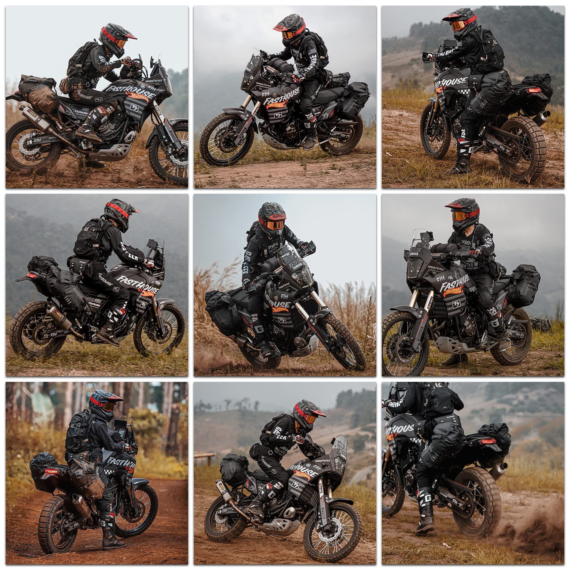 【装着簡単&汎用】バイク汎用サイドバッグ、キャリアがない車種でも装着できる。積載スペースが少なく、公道車からアドベンチャーバイク、オフロードバイクでも使用できる。バイクと調和したデザインで、ウインカーとマフラーを避け干渉しない、装着、積載した状態でもライディングを妨げない。