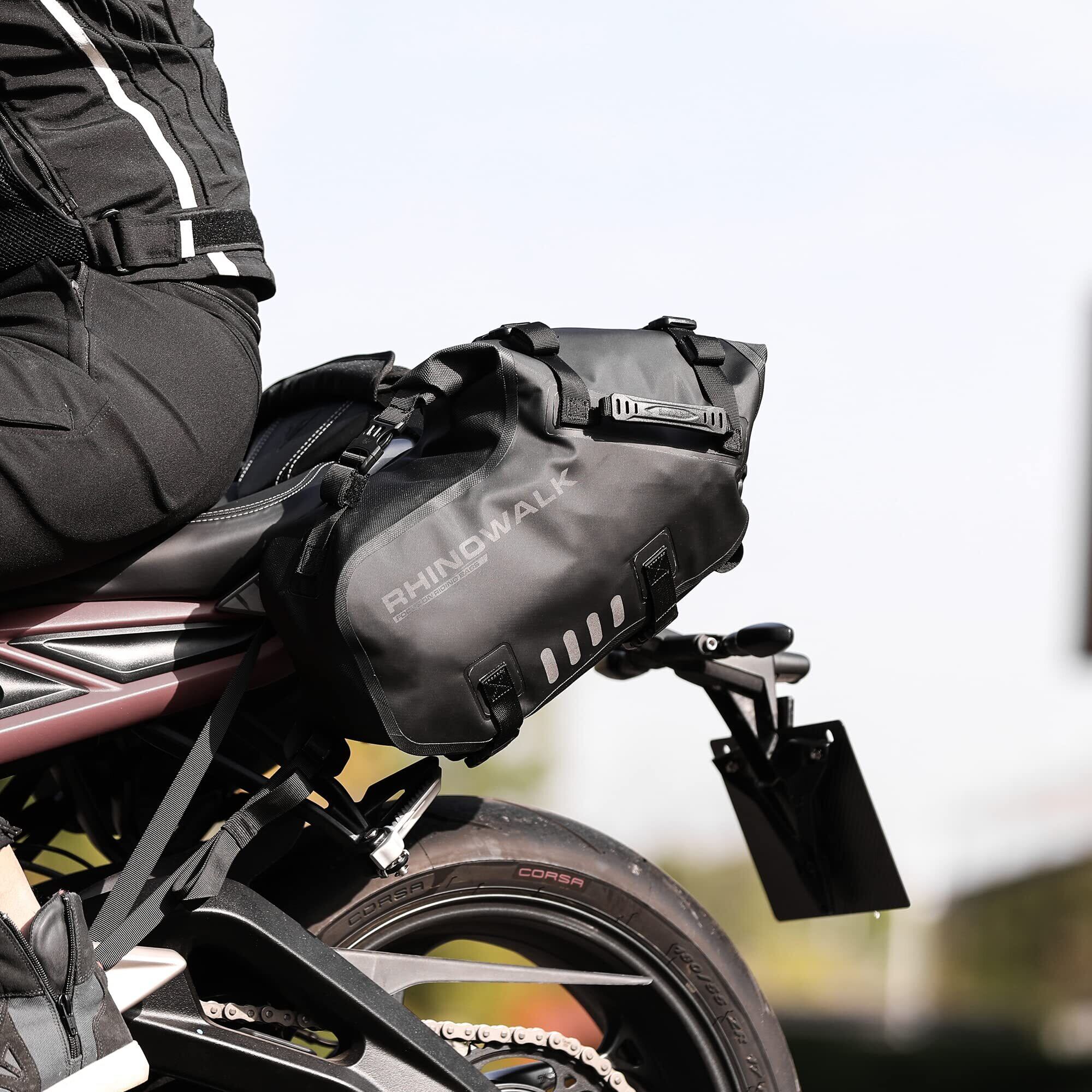 Rhinowalk バイク用サイドバッグ 防水 ツーリングバッグ キャンプ ロングツーリング オフロード 完全防水防塵防砂サイドバッグ 18L(9L*2) 取り付け簡単 汎用 サドルバッグ ブラック