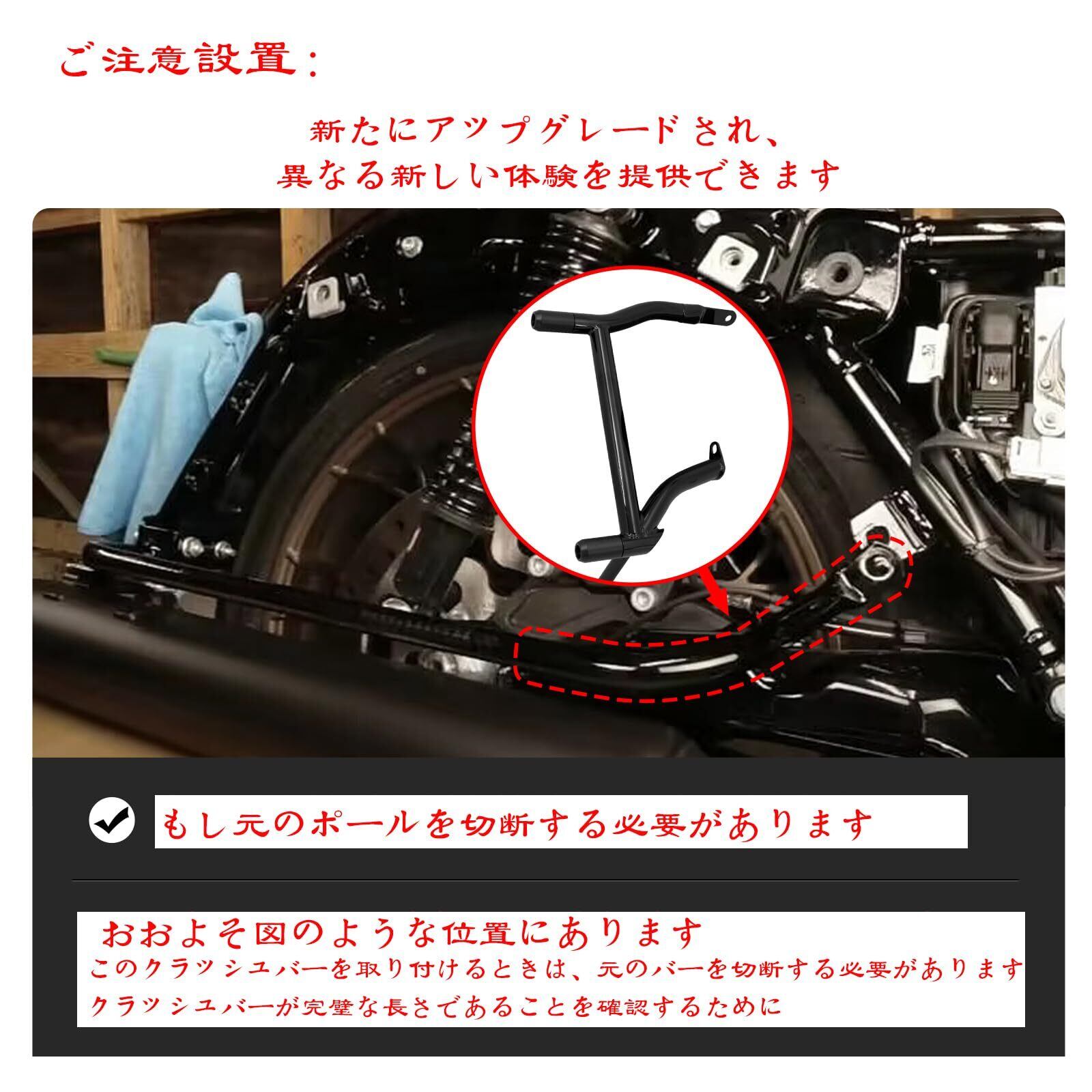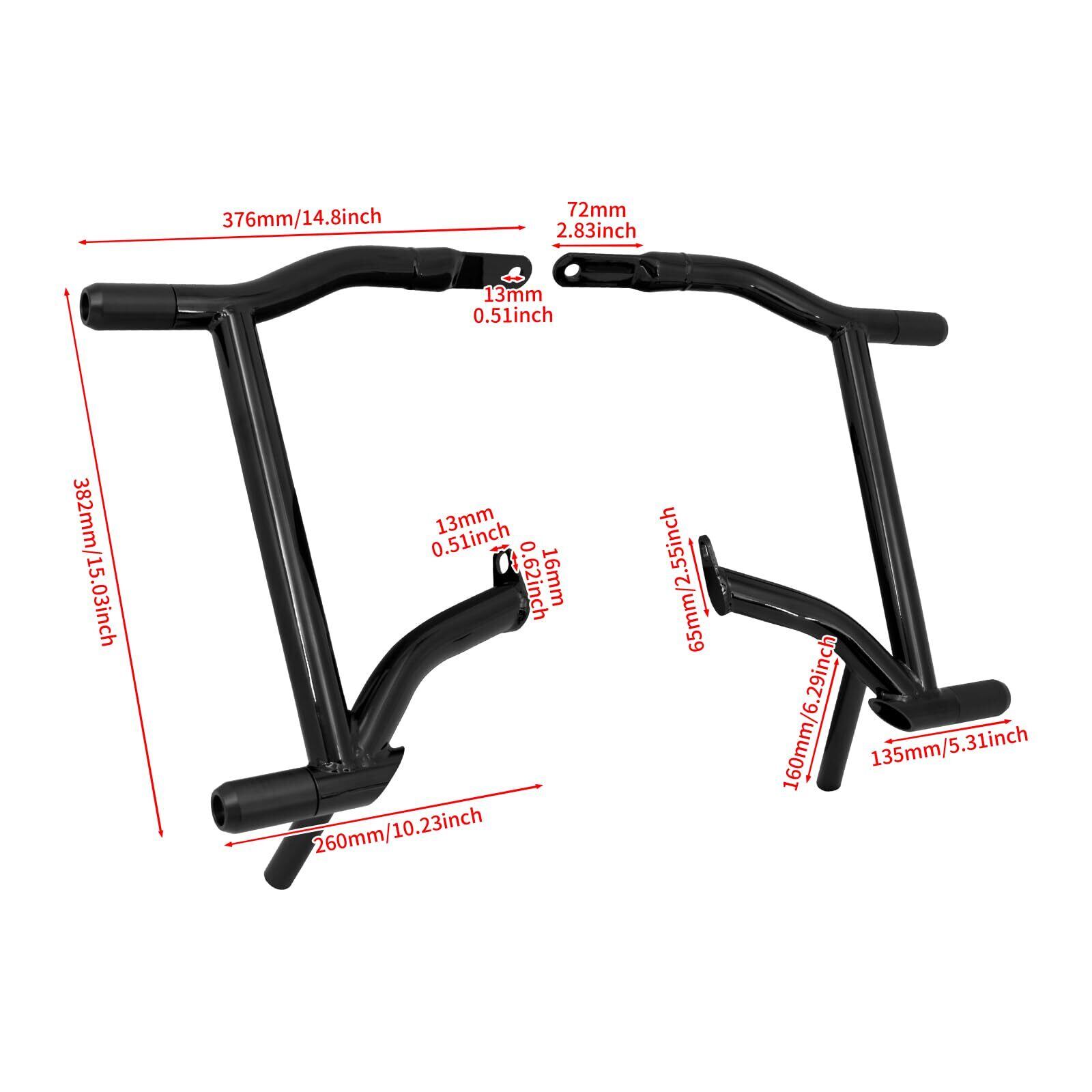 【機能 & 飾り】:旅行に便利。サドルバッグの先端を保護し、サドルバッグ ガード バッグを受け入れて収納力を高める形状になっています。取り付けに関する注意: バッグガード下部に 0.59 インチのスペーサーを追加すると、バッグガードとスイングアーム間の距離を効果的に増やすことができます。取り付け時には、2 つの部品を互いに取り付け、中央のボルトからフレームに取り付けることをお勧めします。ブラケットが所定の位置に収まるまでボルトを締めないでください