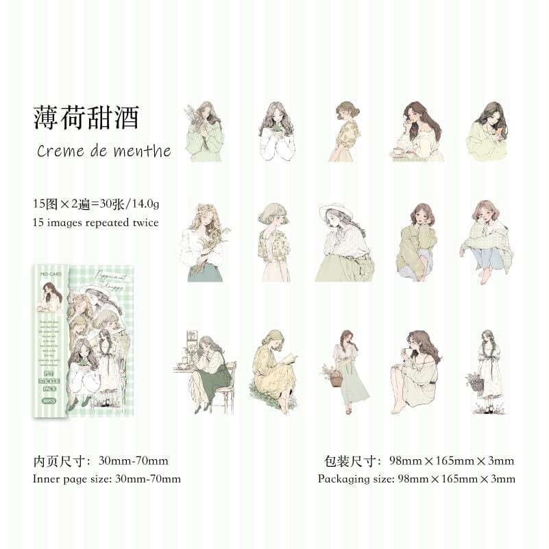 【魅力的なデザイン】:このフレークシールセットは、レトロでファッショナブルな女の子たちをモチーフにしたデザインが特徴。シール帳やメモ用紙に貼るだけで、その洗練されたスタイルを楽しむことができます。クリエイティブなアイデアを引き立てること間違いなしです!