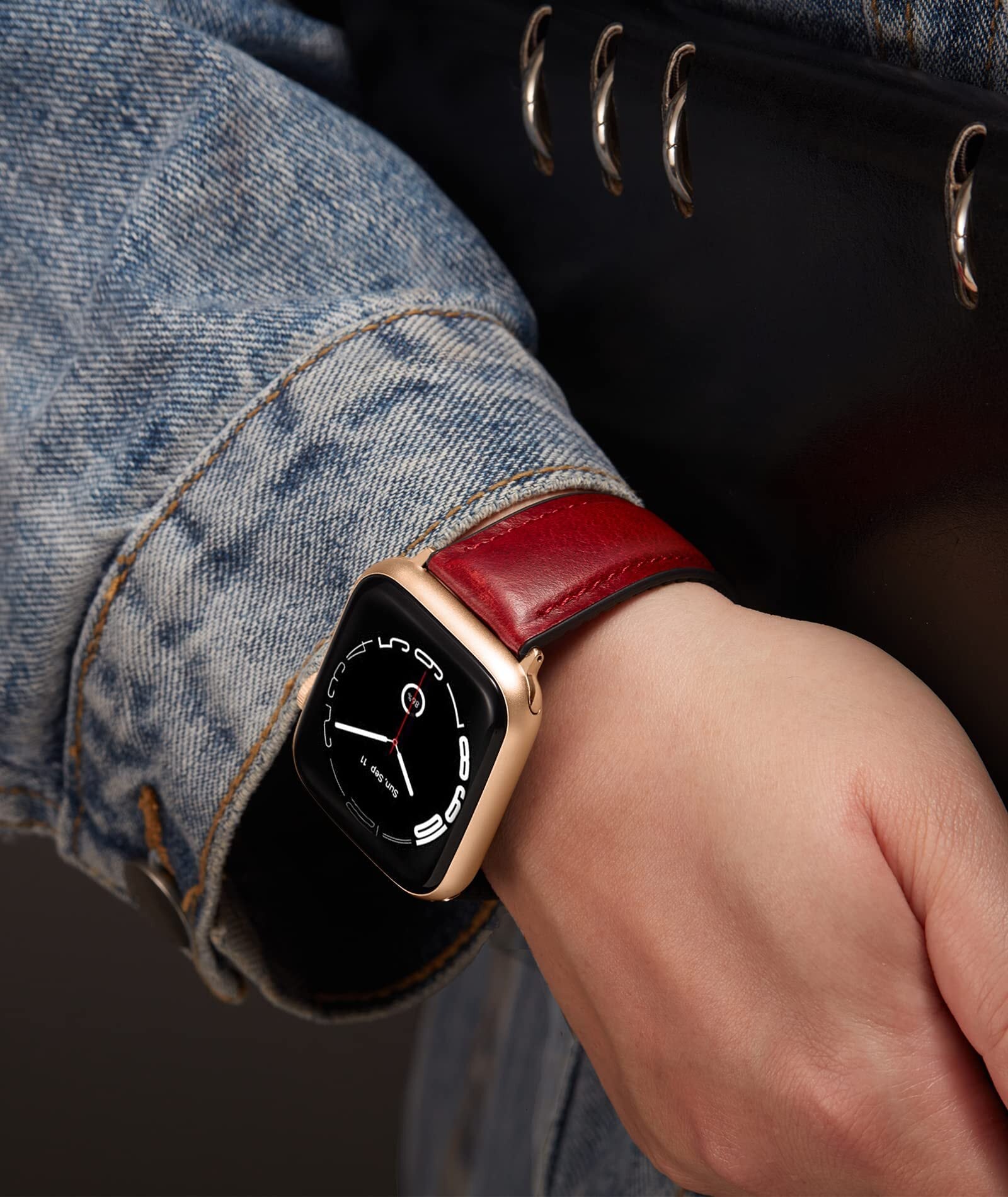 コンパチブル Apple Watch バンド 40mm 38mm 41mm 42mm コンパチブル アップルウォッチバンド オイルワックスレザー 革ベルト 内側シリコン製 通気性 コンパチブル iWatch ベルト SE SE2 Series 10/9/8/7/6/5/4/3/2/1 メンズ レディース(レッド,ローズゴールド バックル) | hananoki