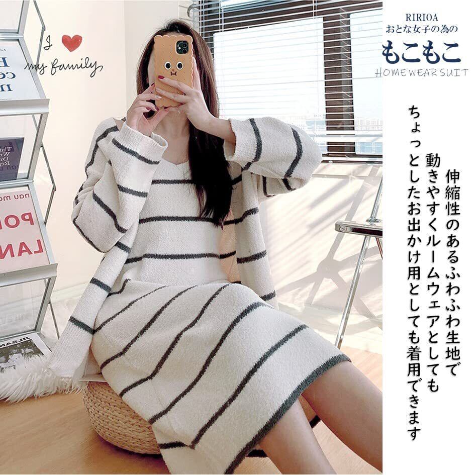 [RIRIOA] ルームウェア ワンピース パジャマ レディース もこもこ 上下セット カーディガン 2点セット