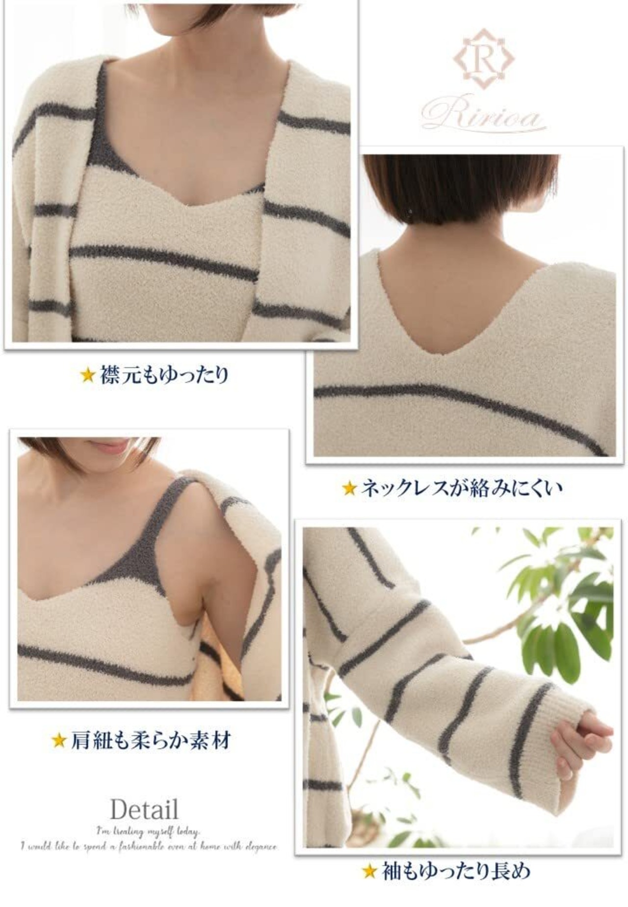 【多用途に使えるデザイン】:カジュアルなホームウェアとしてはもちろん、おやすみ前のリラックスタイムにも最適です。カーディガンは羽織りにも使えるので、朝のひんやりした空気にも対応できます。機能性とファッション性を両立した優れたルームウェアです。