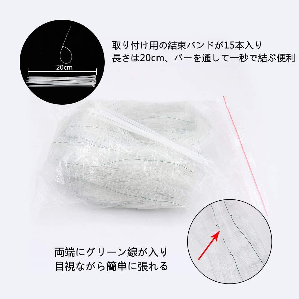 【取り扱い便利】切ってもほつれないぼうちょうネットは、設置場所に合わせてハサミで裁断が可能です。鳥よけネットの両端に緑の確認ラインが入っておりますので、目視ながら張れて、15本結束バンド付き、女性一人でも気軽に取り付けられます。