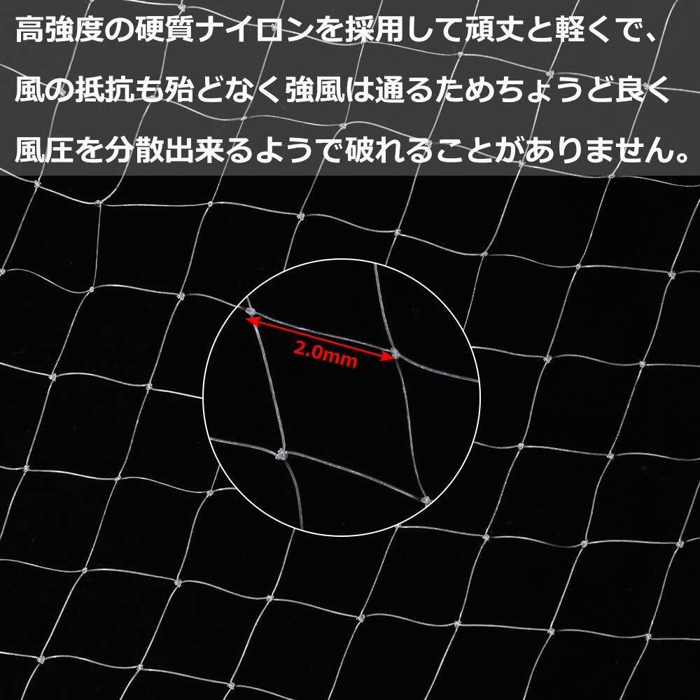 【風の抵抗な材質】ネットは高強度ポリエチレンHDPE材料を採用して頑丈と軽くで、風の抵抗も殆どなく、強風は通るためちょうど良く風圧を分散出来るようで破れることがありません。 それに耐熱性が持ち、夏の紫外線に耐え、雨風による劣化に強くてホツレにくい、5年間程使えます。