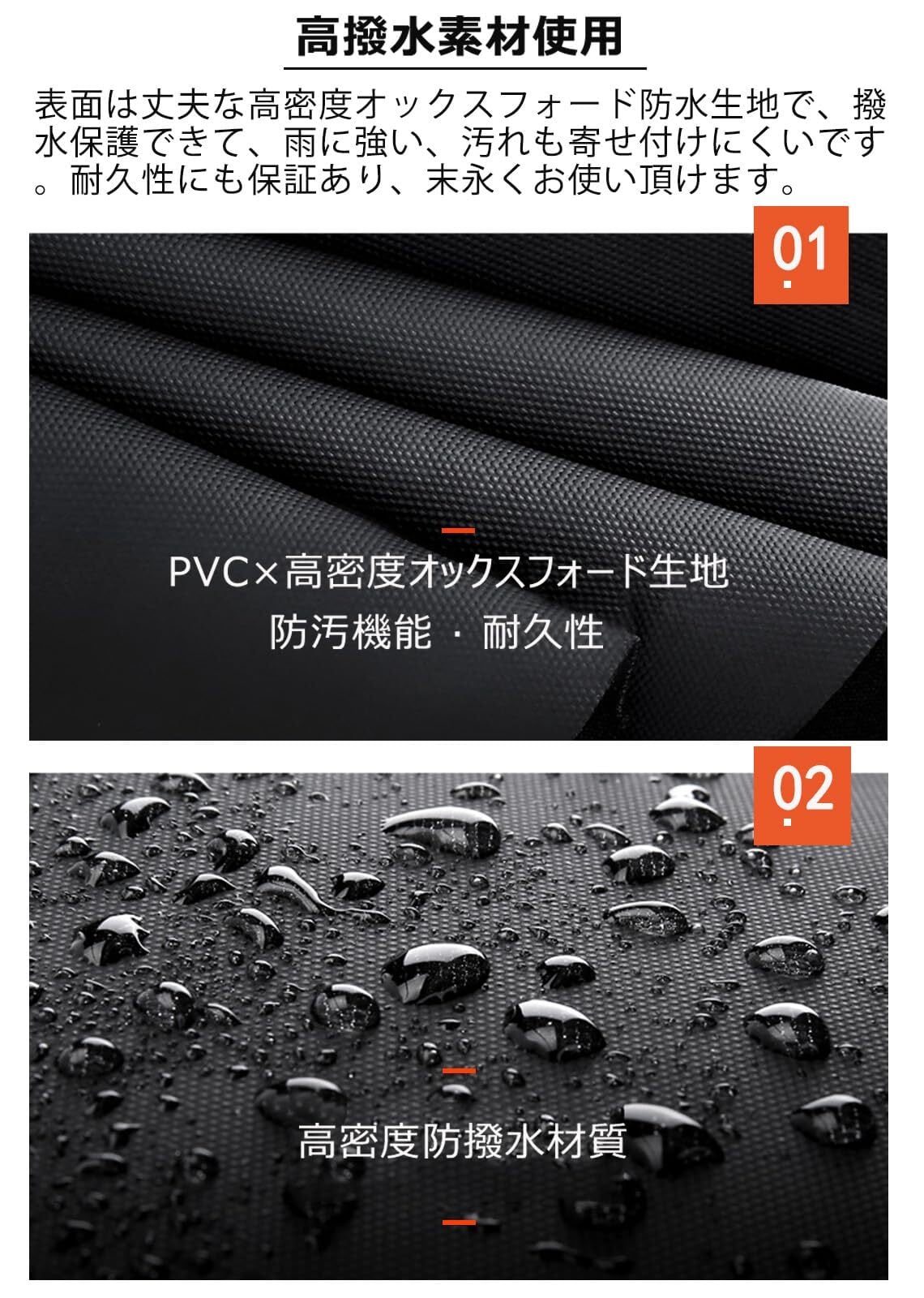 防水性能:肩掛けバッグの表面は丈夫なpvcと高密度オックスフォードを使います。このPVC自体が防水素材として幅広く使われていますので、ボディバッグは生地から水を通さず、長く防水性能を維持することができます。