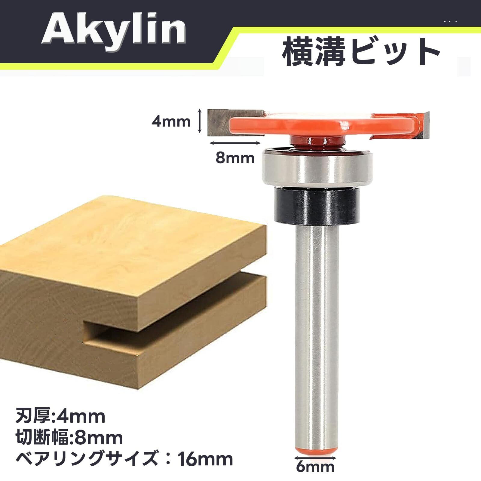 [Akylin 横溝ビット ジョイントカッター 6mm軸 T型 ジョイントスロットカッター 幅4mm トリマービット 超硬刃 ルータービット 16mmベアリング付き 溝掘り 溝ビット 木工用 (切断幅:8mm)]