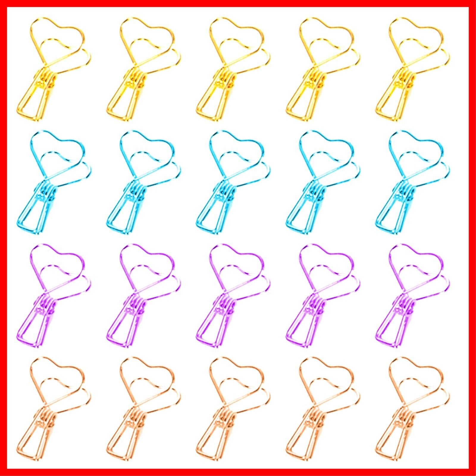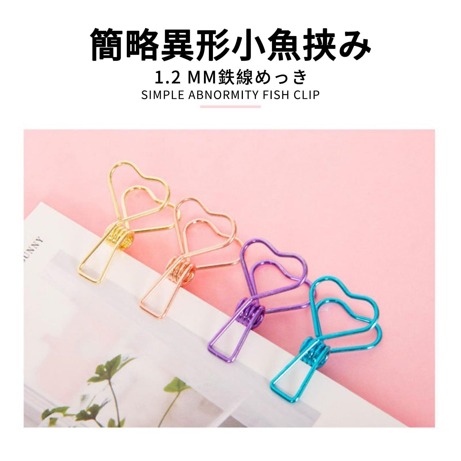 20個入りねこ型クリップ ねこ ダブルクリップ 星型/ハート型/猫型 ペーパークリップ 小 バインダークリップ ネコデザイン 金属製 書類整理 事務用品 オフィス 文房具 かわいい チケット用 ローズゴールド/パープル/ブルー/ゴールド (ハート型)