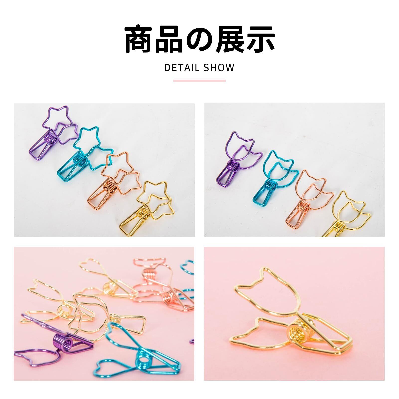 20個入りねこ型 クリップ ねこ ダブルクリップ 星型/ハート型/猫型 ペーパークリップ 小 バインダークリップ ネコデザイン 金属製 書類整理 事務用品 オフィス 文房具 かわいい チケット用 ローズゴールド/パープル/ブルー/ゴールド (ハート型)