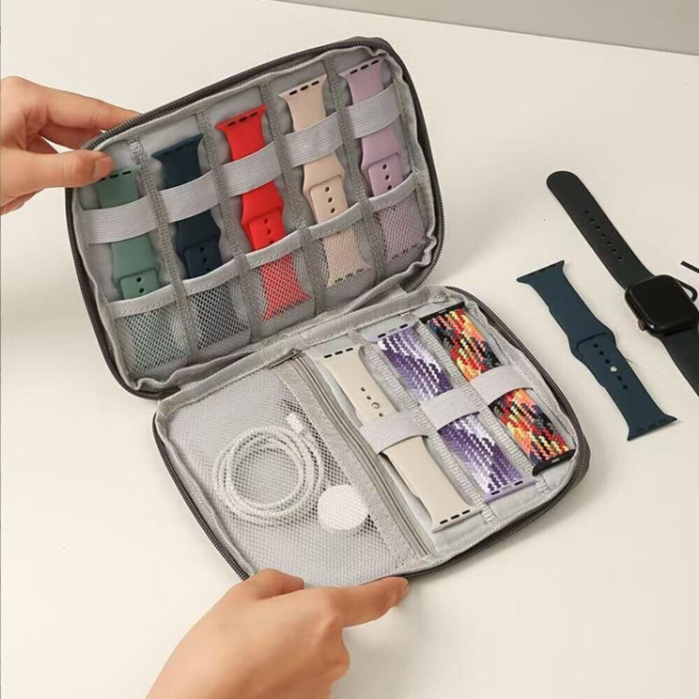 【こだわりの収納力で使いやすさ抜群!】 : このガジェットポーチは、時計ストラップや配線アクセサリーなどを分かりやすく収納できるスペースを確保しています。内部の仕切りで、小物が絡まる心配が少なく、さっと取り出せる便利さが魅力です。特に男性の方におすすめのアイテムです。