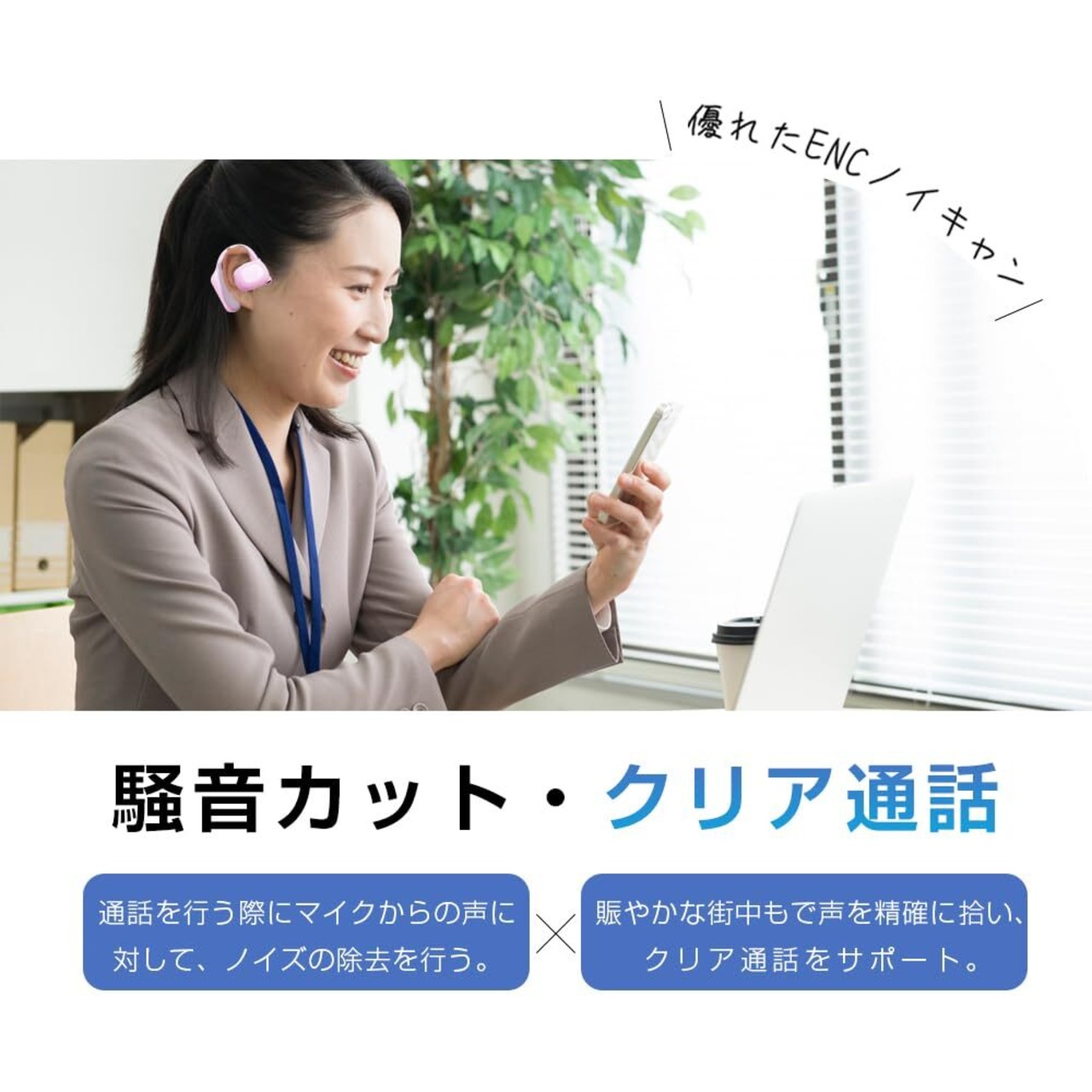 SLuB 空気伝導イヤホン Bluetooth 5.3 ワイヤレスヘッドセット OWS式 オープンイヤー 非骨伝導式 耳かけ式 両耳 左右分離型 HiFi音質 防水 防滴 iPhone/iPad/Android対応(ピンク) | hananoki