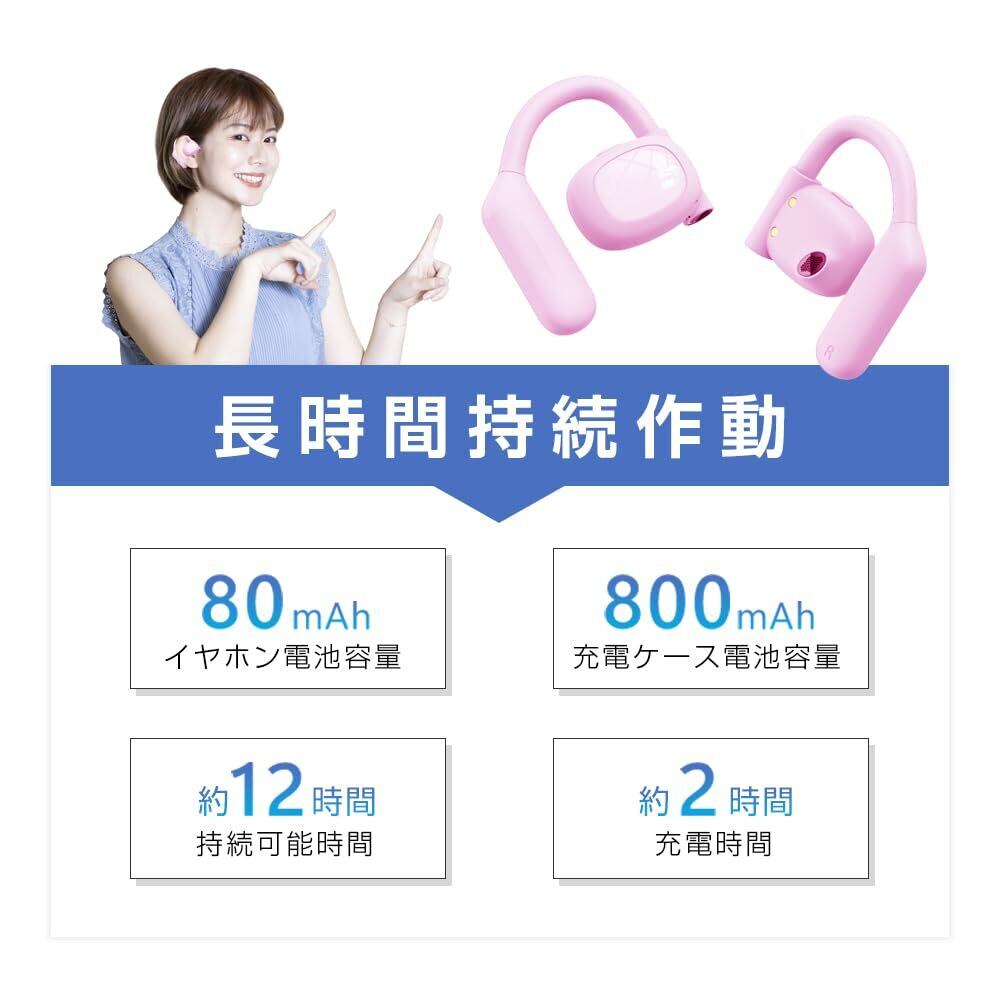 SLuB 空気伝導イヤホン Bluetooth 5.3 ワイヤレスヘッドセット OWS式 オープンイヤー 非骨伝導式 耳かけ式 両耳 左右分離型 HiFi音質 防水 防滴 iPhone/iPad/Android対応(ピンク)