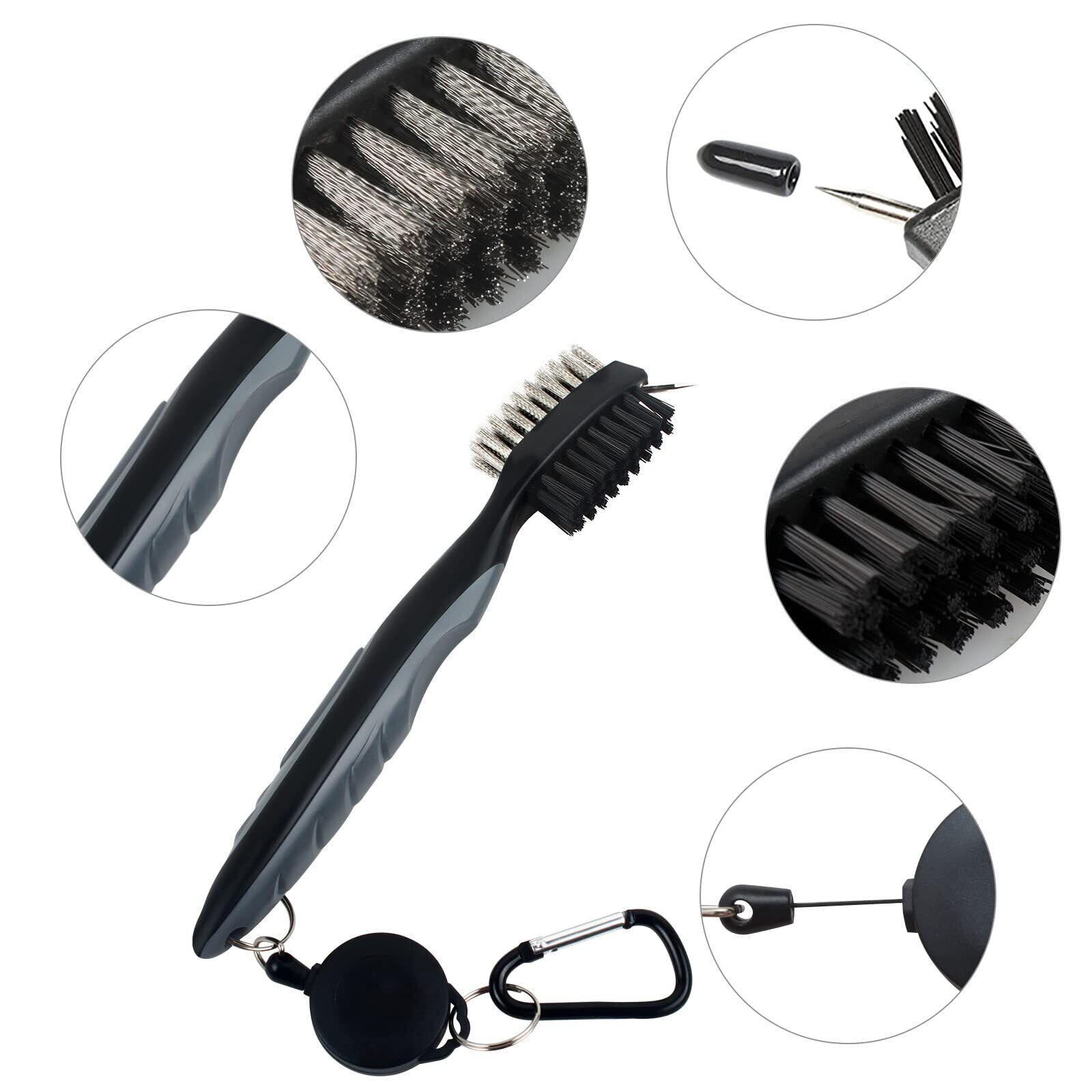 【優れたクリーニング効果!】 : 硬めのブラシと専用の溝削りが組み合わさった多機能設計により、泥や汚れをしっかりと取り除き、クラブの性能を最大限に引き出します。特にクラブの溝を清潔に保つことができ、ショットの精度向上にもつながります。
