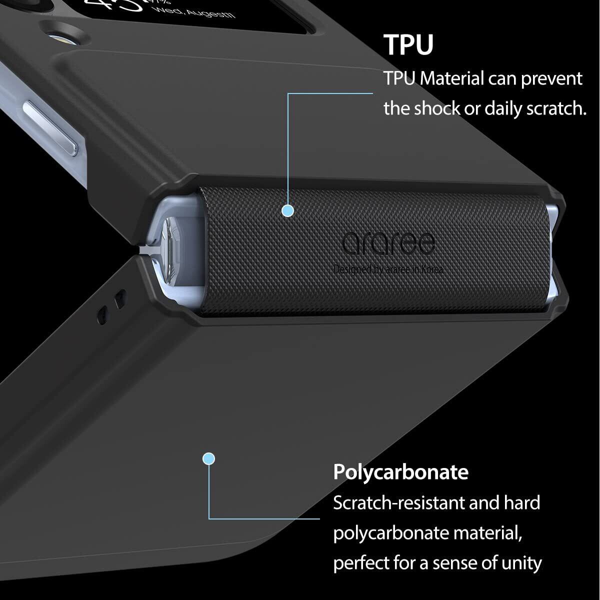 【araree】 Galaxy Z Flip4 5G 対応 ケース カバー 耐衝撃 ヒンジ 保護 スマホケース ストラップホール 付 ヒンジ保護 スマホカバー 耐衝撃ケース [ Samsung GalaxyZFlip4 GalaxyZ Flip4 ギャラクシーZ フリップ4 SCG17 / SC-54C サムスン ギャラクシーZフリップ4 対応 ] Aero Flex ブラック | hananoki