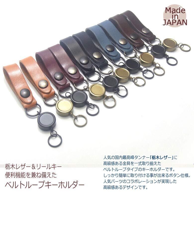 栃木レザー仕様 リールキーを備えたシンプルタイプを備えたマルチタイプのベルトループキーホルダーです。上質なツヤのある革に上品で高級な金具がポイント。デザインと機能性を考えて作られた職人が一つ一つ丁寧に作った国産品です。