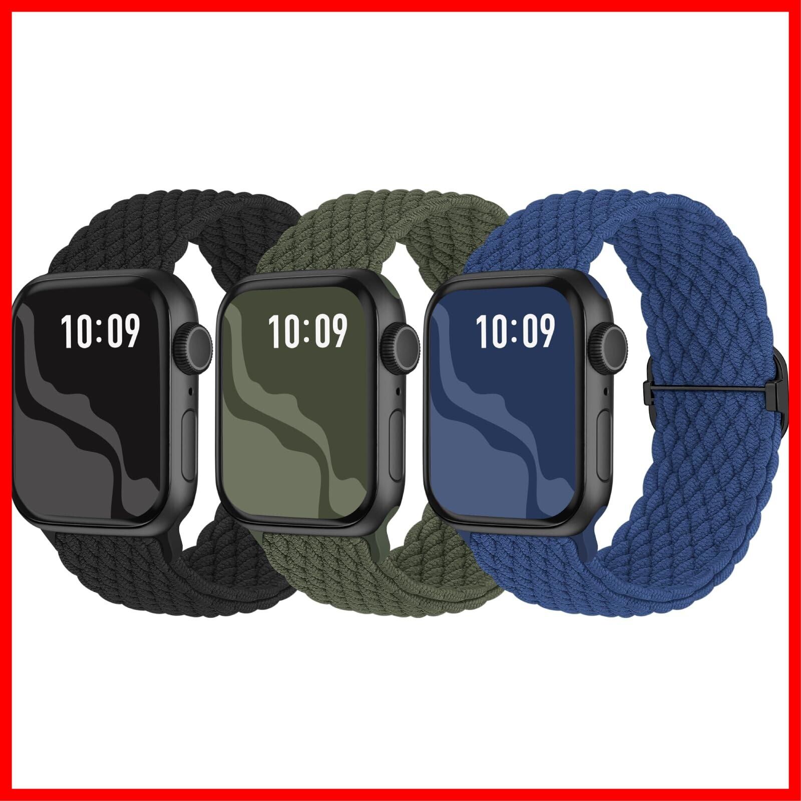 【3枚入り】Suitisbest コンパチブル アップルウォッチ バンド 編み込み 49mm 46mm 45mm 44mm 42mm Apple Watch ナイロンバンド 伸縮性 ゴム アップルウォッチ スポーツベルト Ultra 3 2 1 Series 11 10 9 8 7 6 5 4 3 2 1 SEに対応 長さ無段階調整 柔軟 通気 防汗