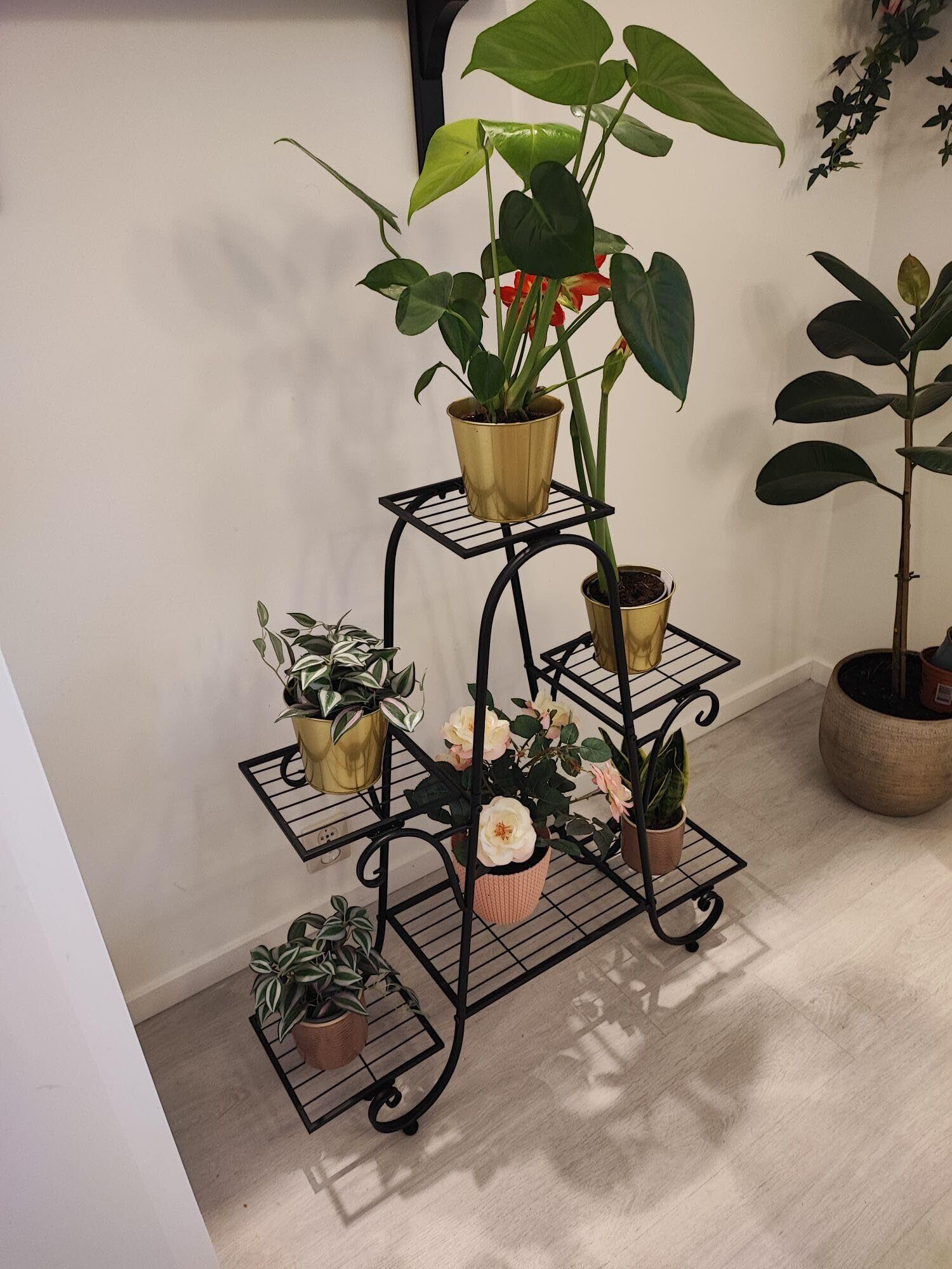 【大容量の大型植物棚】6つの棚板があり、6鉢以上の鉢植えを置ける大きな植物棚で、空間を有効活用できます。さまざまな種類の花や植物を自分のセンスで上手く飾ってみたい方に適しています