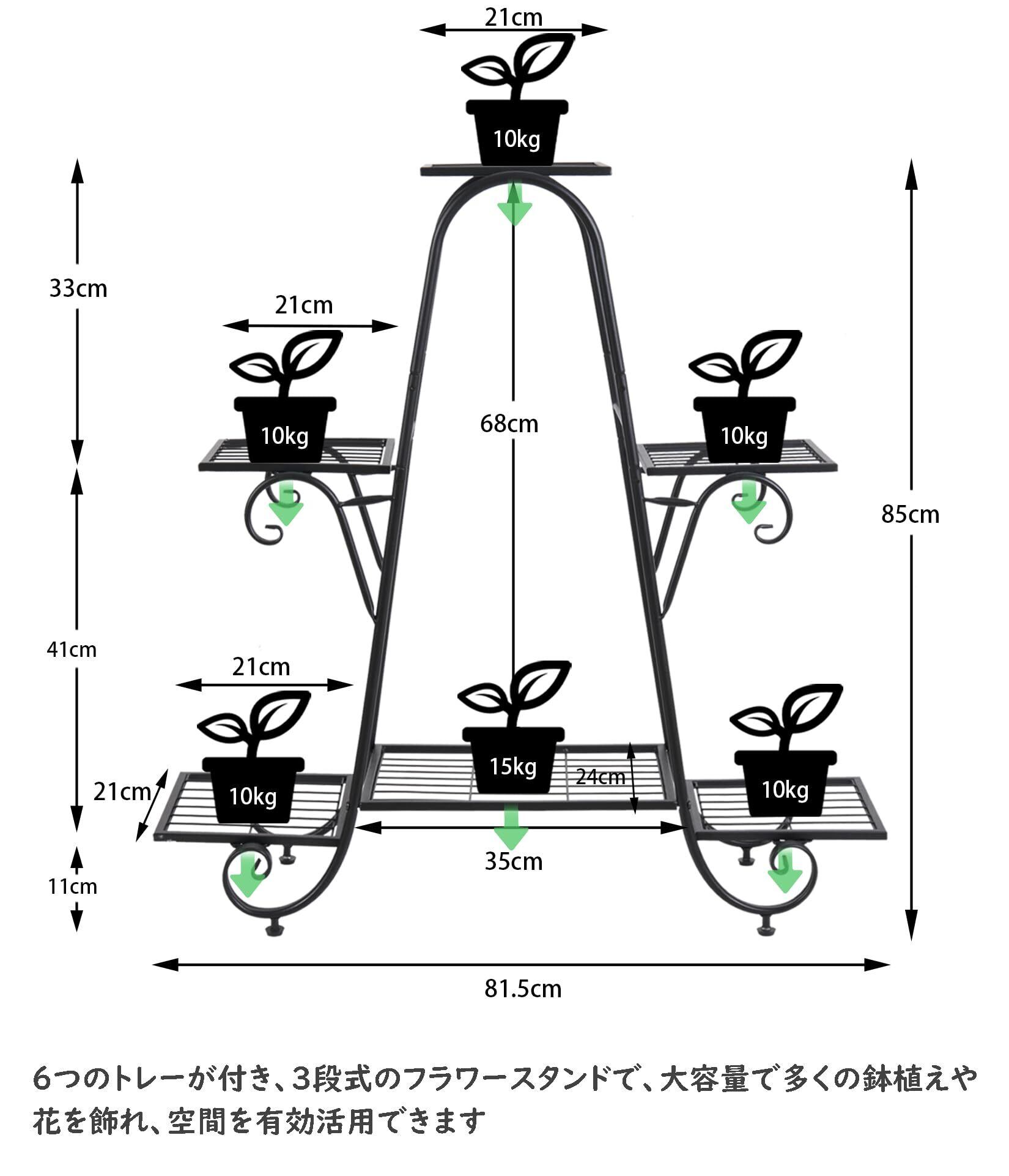 Susire フラワースタンド アイアン 黒 3段 幅80 園芸ラック 室内 屋外 花台 可愛い 観葉植物 シンプル スチール メタル モダン ガーデンラック メッシュ 丈夫 玄関 おしゃれ リビング ベランダ 高さ85cm ハイタイプ 大型 | hananoki