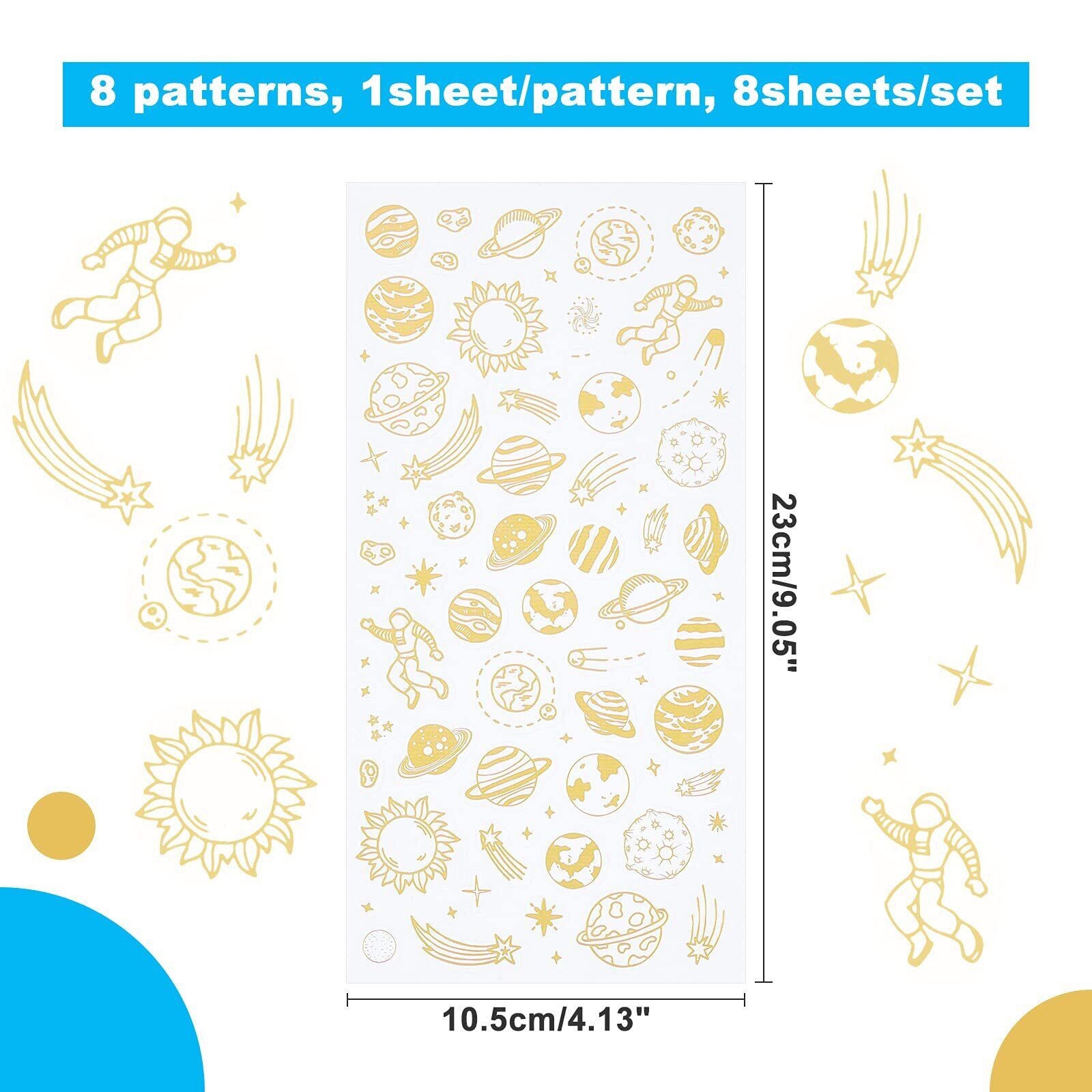 OLYCRAFT 8枚 ステッカー ゴールド スクラップブッキングステッカー 手絵ステッカー 手帳日記 ミックスシール 粘着 スケジュールシール 防水 アルバム DIY手作り 工芸品 貼り紙 電話装飾 ギフト 日記装飾用品