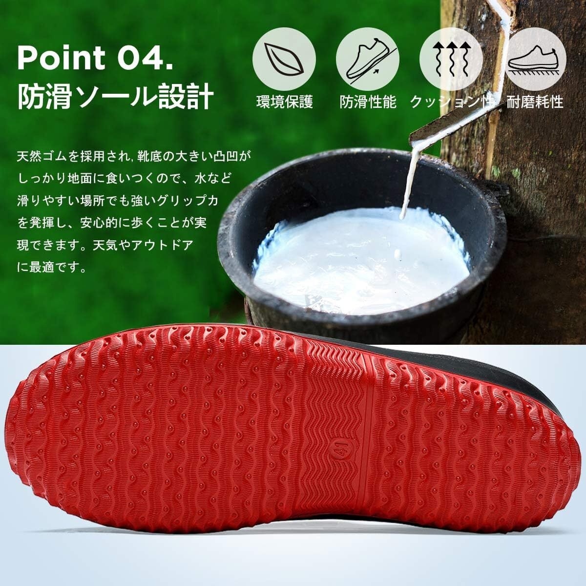 【ダイビングスーツ材料を採用、防水性抜群】アッパーからソールまで継ぎ目のない一体成型した設計なので水の侵入を完全にシャットアウト!天然ゴムの下にフットカバーのような一枚が内蔵、その一枚がダイビングスーツ生地を使用、防水性に優れています。足を乾燥した状態に保てます。