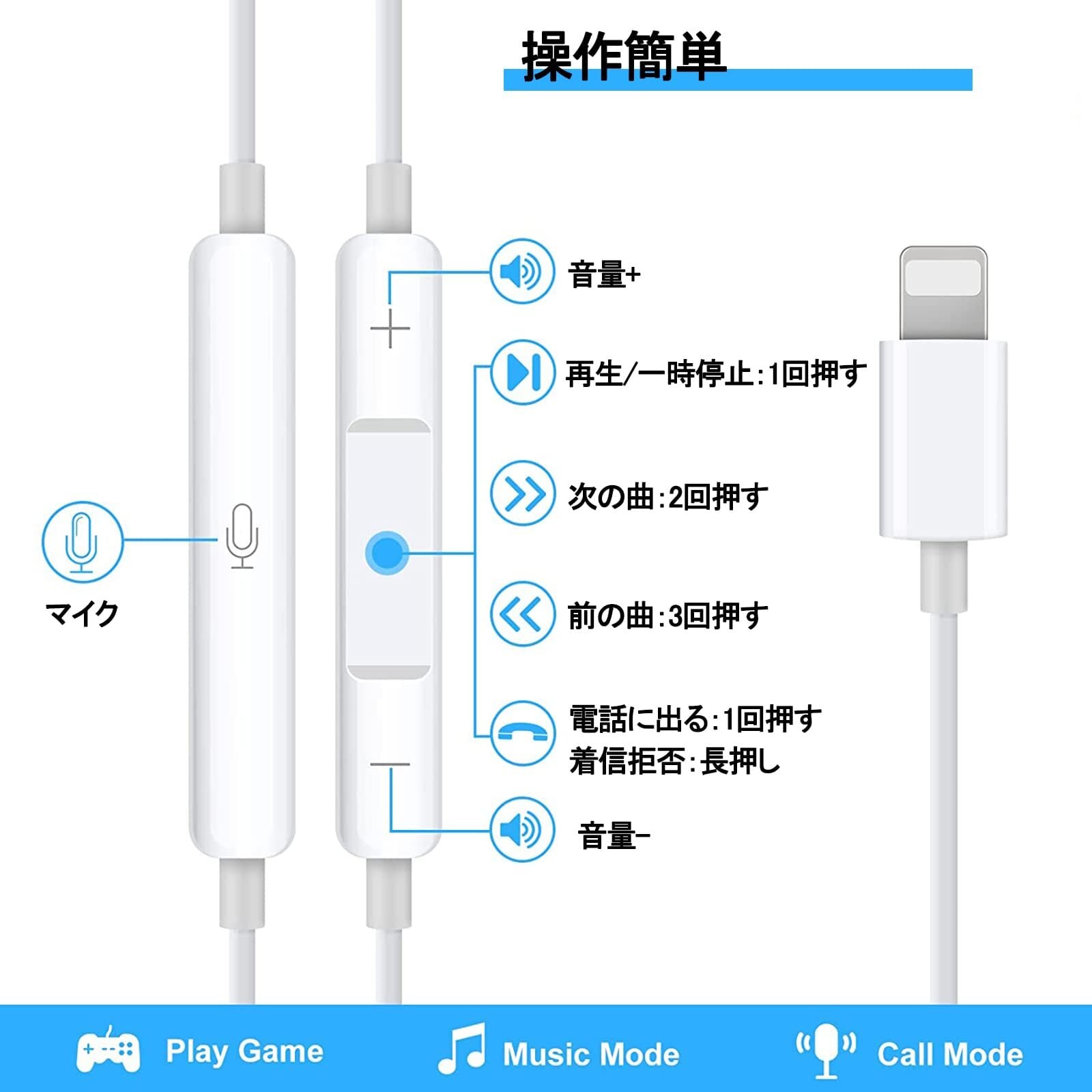 イヤホン iPhone 用 有線 マイク付き 重低音 ステレオイヤフォン リモコン付き 音量調整 通話対応 音漏れ防止 カナル型 ヘッドホン 対応 iPhone14/14Pro/14Plus/14Pro Max/13/12/11/Mini/SE/X/XS/XR/XS Max/8/8P/7/7P/iPad/iPod 対応