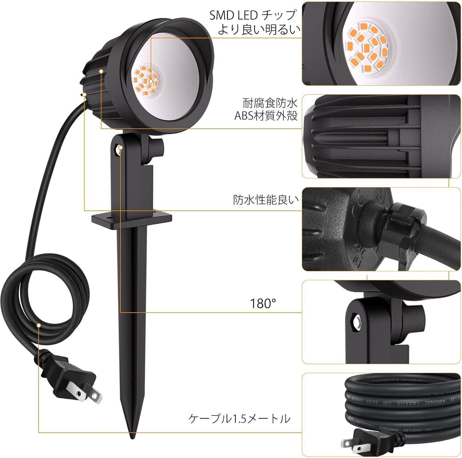 【2022年改良&明るい】改良点①お客様の声に応じて登場:3Pプラグ →2Pプラグに改良しました。3P→2P変換アダプタは不要です。改良点②製品の構造を改良しました。防水性能を大幅に向上させました。COB LEDチップ採用して、普通のLEDチップより明るく、安定しています。900ルーメンで超明るく、均一な庭のスポットライト、長距離&広い放射範囲、柔らかい地上で集中照明のため、花壇に魅力的で、装飾的な輝きを追加し、暖かく、甘い屋外夜を提供することが出来ます。庭木をライトアップしたり壁面に当てたりと、光の使い方でお庭の雰囲気は変わる。効果的に配置すれば夜のお庭の表情もより魅力的に生まれ変わる。