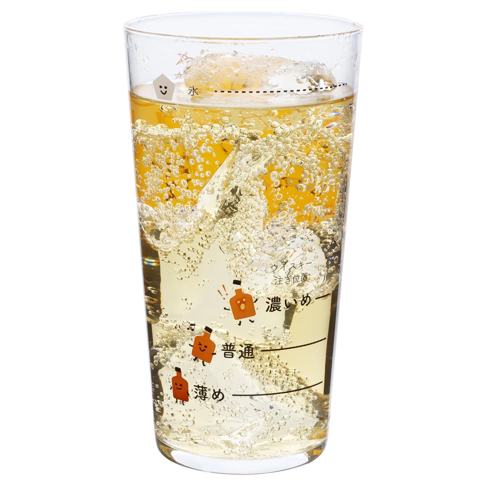 好きな濃さで割れる目安つきグラスにハイボールが加わりました。グラスにウイスキーを入れたときの濃さの目安となる位置をプリントしました。お好みの濃さでハイボールをお楽しみください。専用パッケージに入っていますので、プレゼントにもおすすめです。