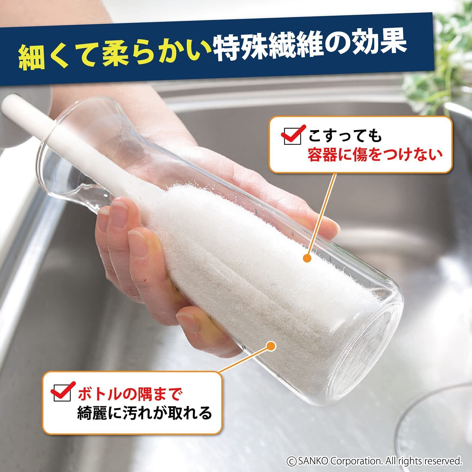 Sanko【日本製】サンコー ブラシ ステンレスボトル洗い 水筒 冷水筒 タンブラー ボトル 哺乳瓶 水だけでも汚れが落とせる特殊繊維 びっくりフレッシュ ホワイト BH-20