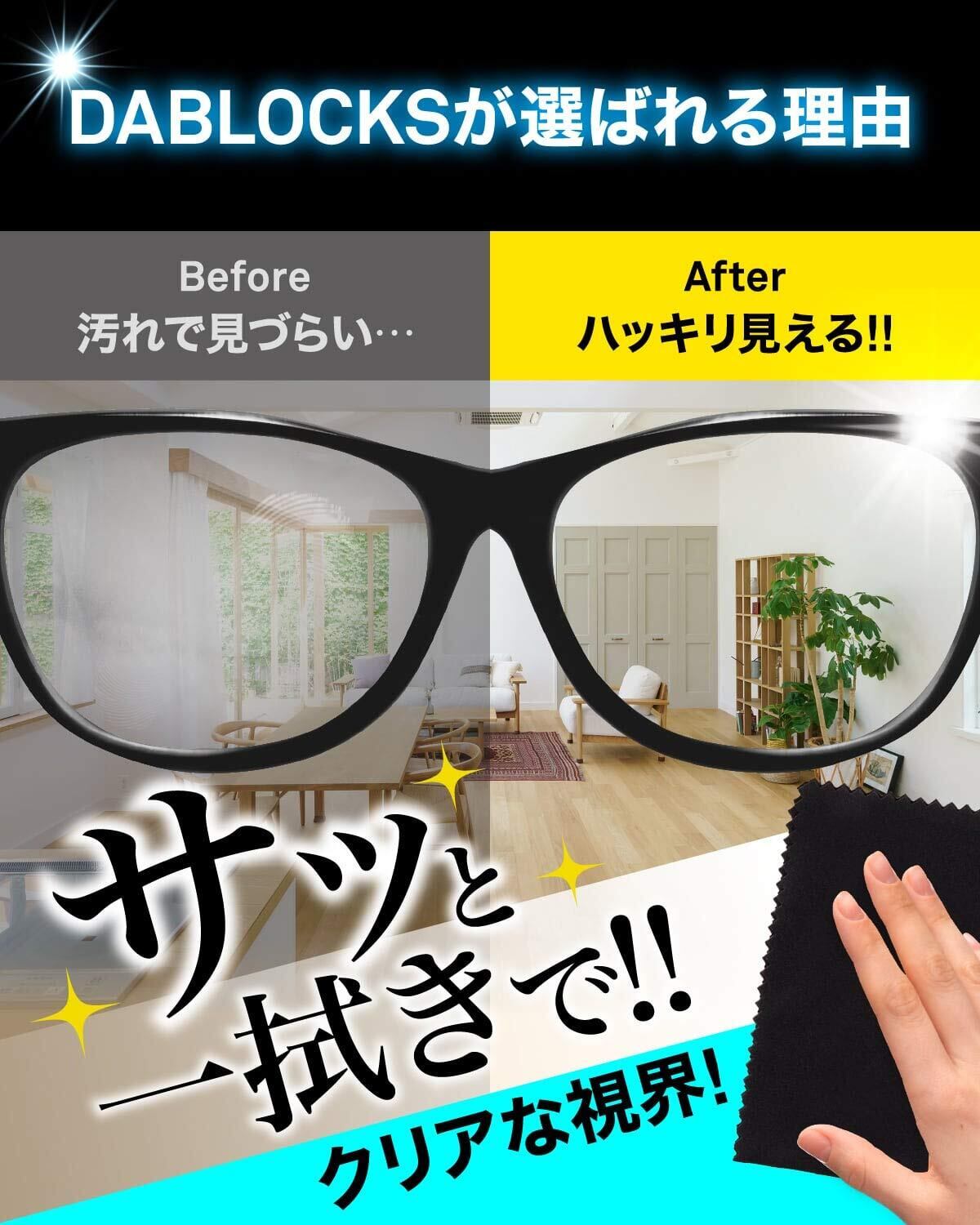 DABLOCKS クリーニングクロス マイクロファイバー メガネ拭き 液晶画面やカメラレンズにも 20×20cmの8枚セット(黒4枚、水色4枚)