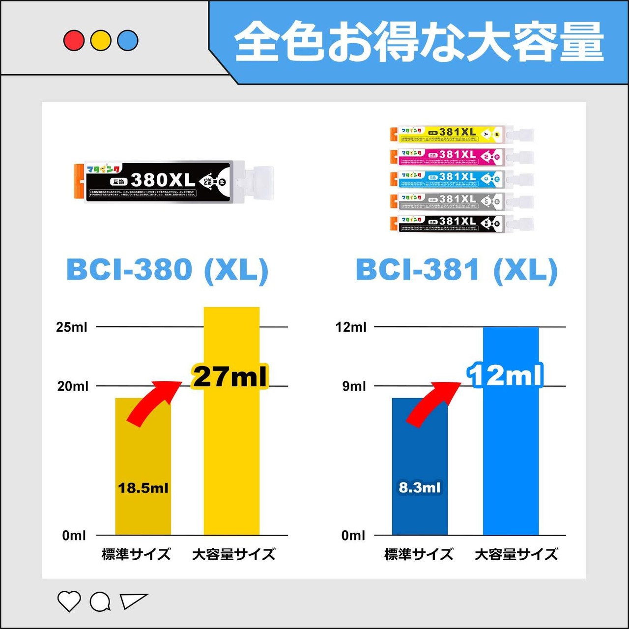 マタインク BCI-381XL BCI-380XL 互換インクカートリッジ 6色マルチパック 大容量タイプ キヤノン(Canon)用 インク 381 380 互換インク TS8130 TS8230 TS8330 TS8430 対応の 381 380 プリンターインク | hananoki