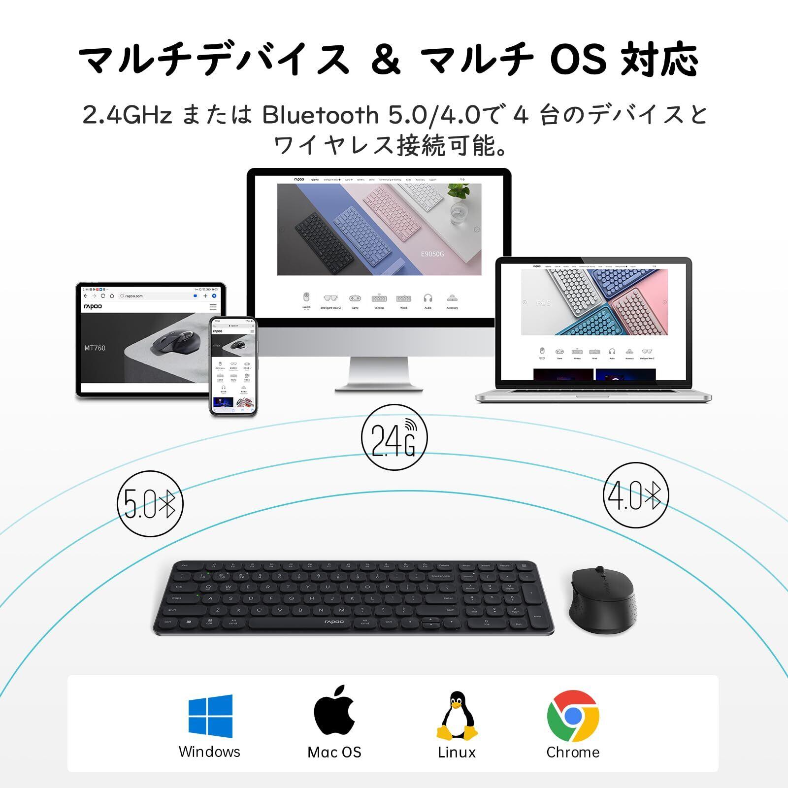 RAPOO 9360M ワイヤレス キーボード マウス セット ブレードシリーズ E9310M 超薄型 99キー キーボードとM300G サイレント マウス 4台デバイス同時接続可能 静音 バッテリー式電源 Windows/Mac/Linux/Chrome対応 ブラック | hananoki