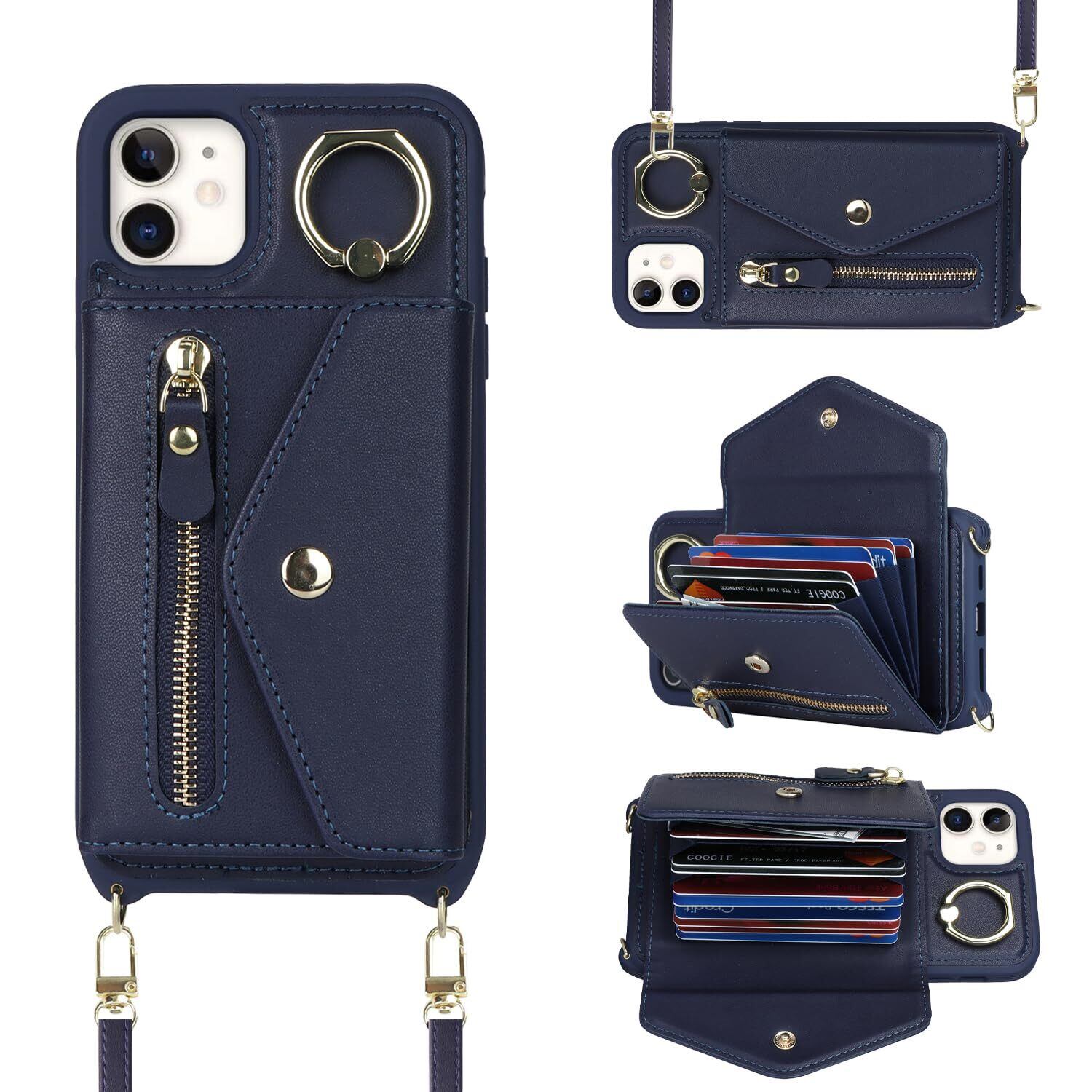 【Hamany】 いphone12 pro ケース スマホ ショルダー iphone 12 ケース 手帳型 ショルダー おしゃれ カード収納 大容量 背面 リング付き スタンド機能 アイホン12プロケース 耐衝撃 耐久性 女性 肩がけ 首掛け 斜め掛け ストラップ付き 長さ調整可能 カバー -ブルー