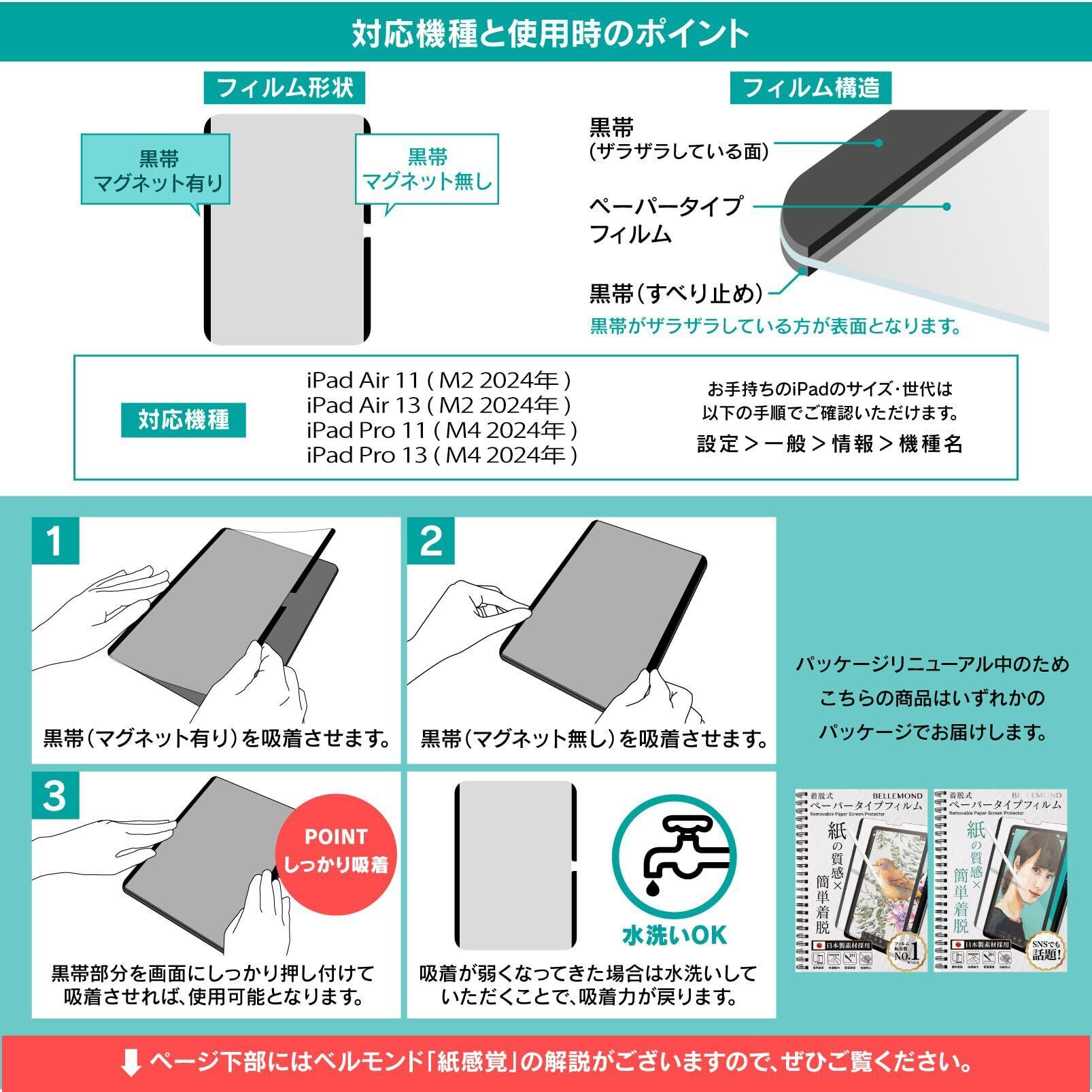 ベルモンド 新型 iPad Air 11 用 着脱式 ペーパータイプ フィルム マグネット タイプ | (M3 2025 / M2 2024) 対応 | ケント紙タイプ 紙のような描き心地 反射防止 保護フィルム アイパッド 【 紙感覚 】 BELLEMOND B1215