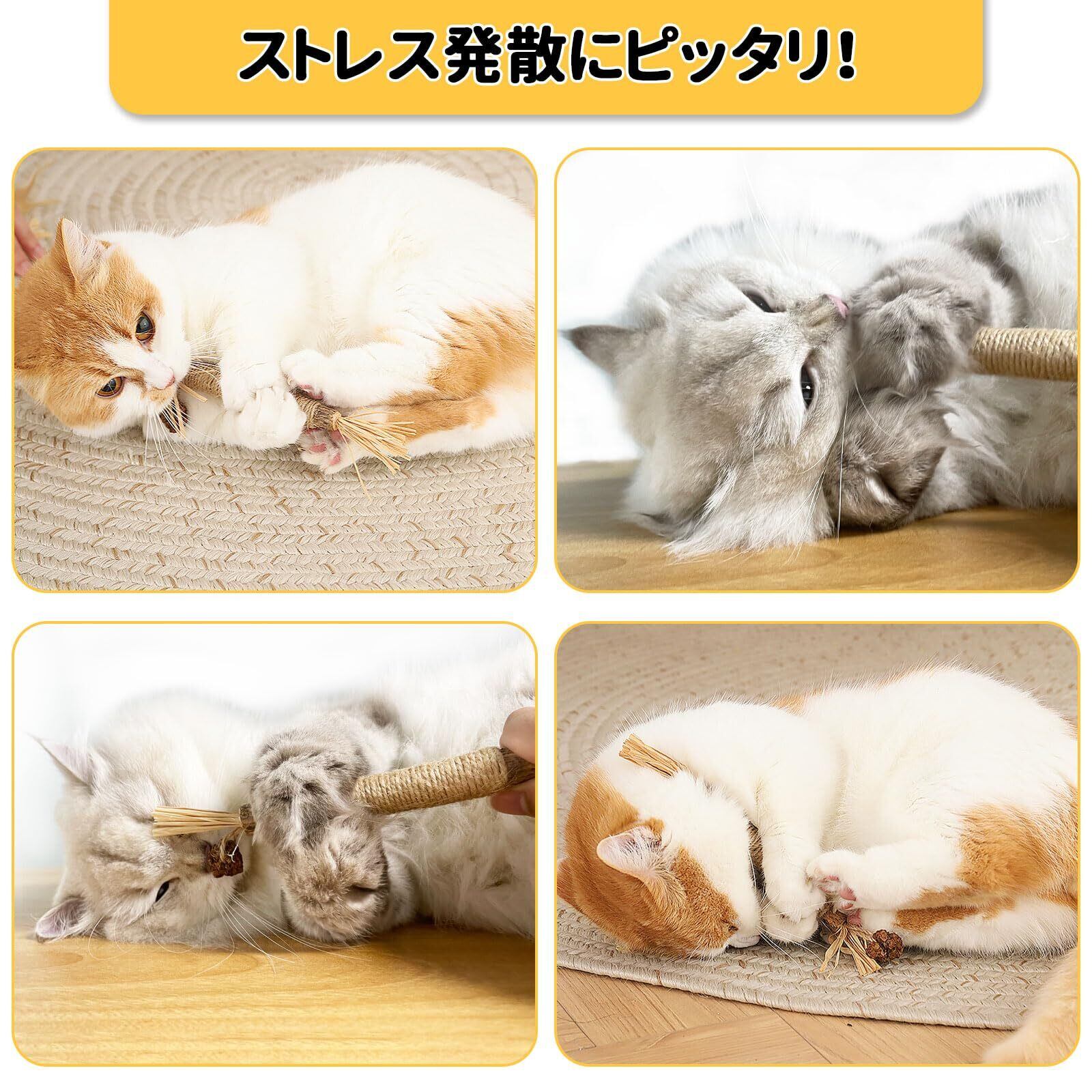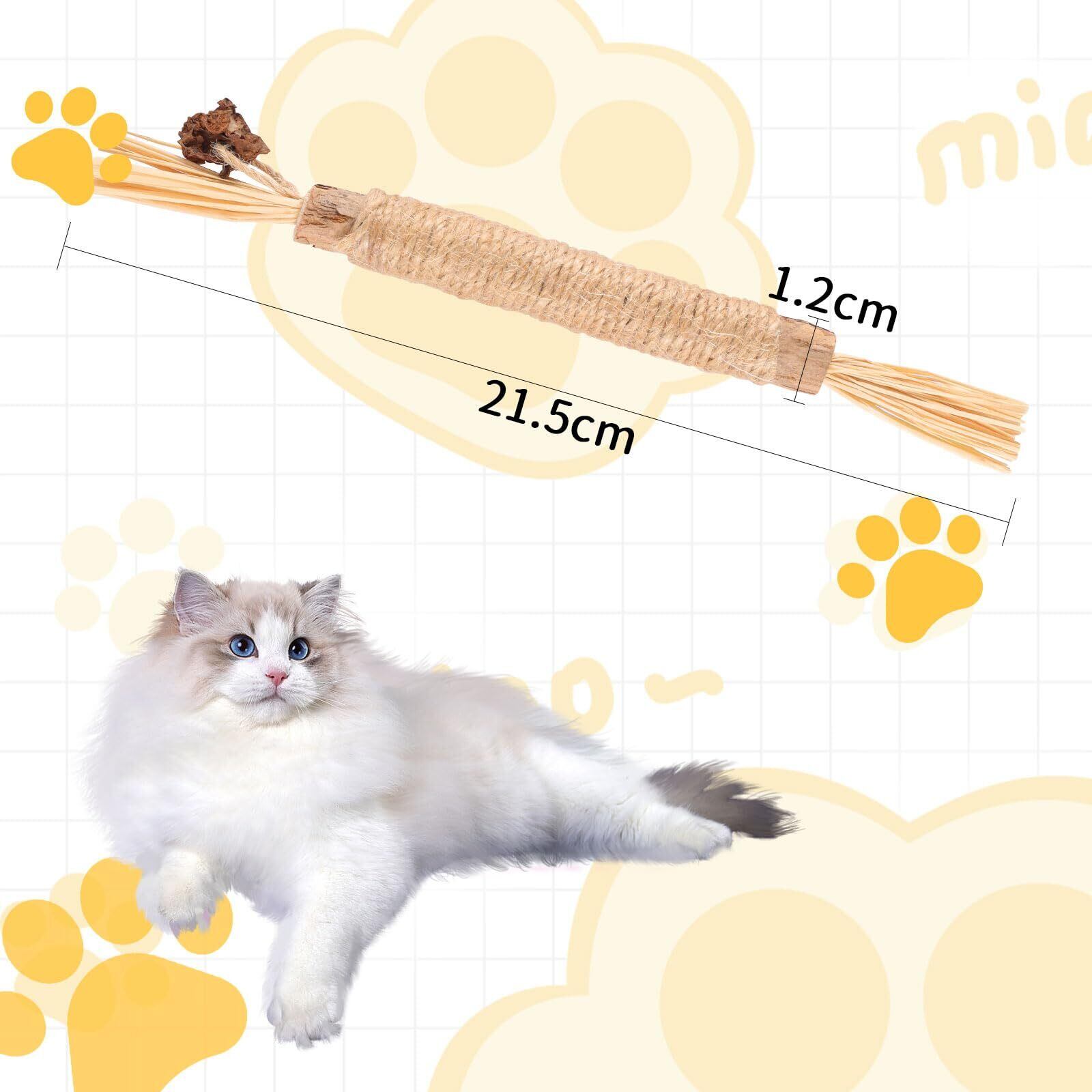 PAKESI 猫 噛むおもちゃ 歯磨き 歯ぎしり棒 またたび 天然木 麻縄 4本入り 天然安全 噛むスティック 歯のクリーニング 無毒 肥満解消 運動不足解消 ストレス解消