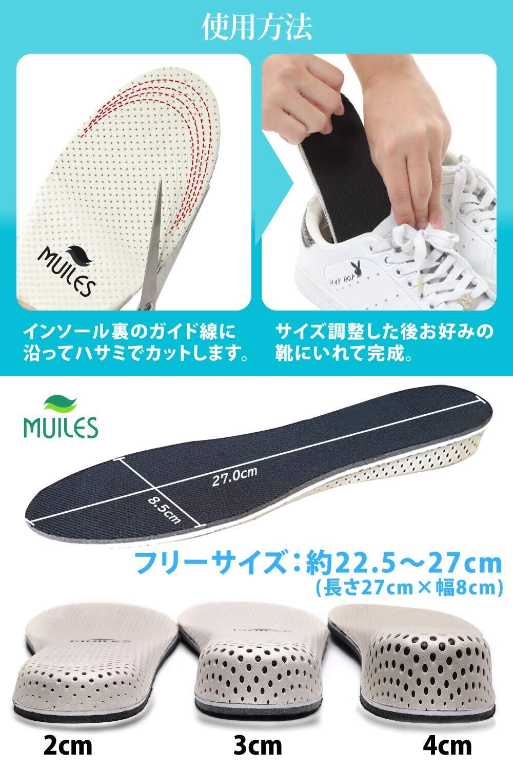 シークレットインソール 高さ3サイズ 【2cm/3cm/4cm】 インソール 身長アップ サイズ調整 (22.5cm~27.0cm) 通気性 疲れにくい 男女兼用 Muiles (3cm×1組)