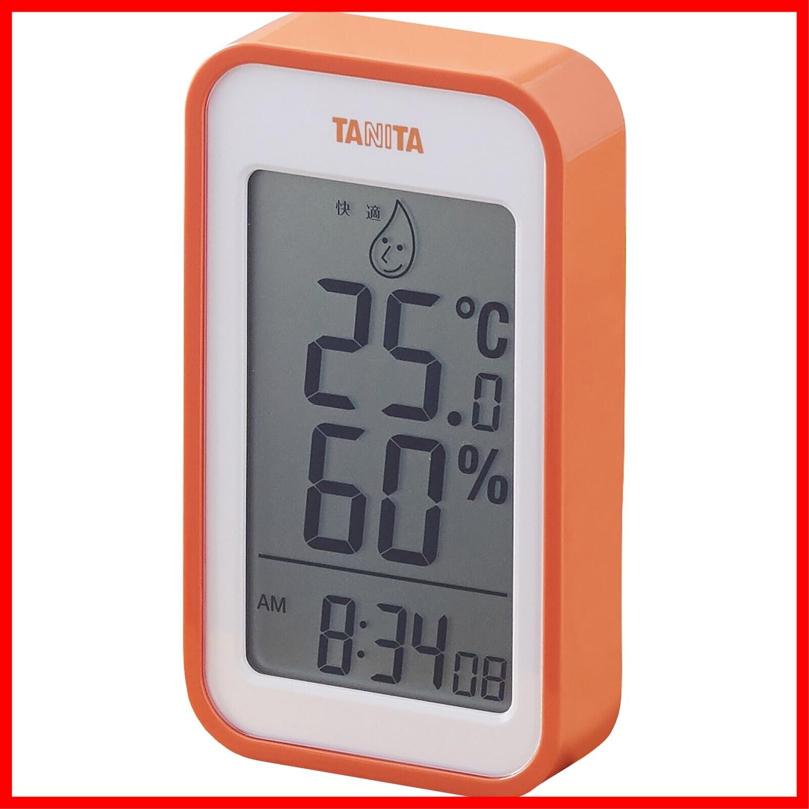タニタ Tanita 温湿度計 大画面 一目で室内環境がわかる 時計 カレンダー 温度 湿度 デジタル 壁掛け 卓上 オレンジ マグネット TT-559 OR