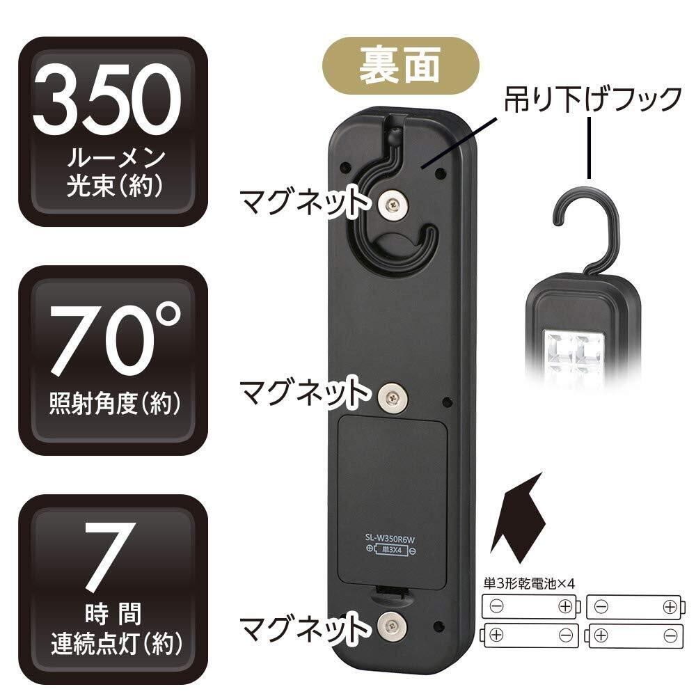 オーム電機 作業灯 LED 懐中電灯 ハンディライト 背面マグネットフック付 屋外仕様 夜間作業 多目的作業ライト SL-W350R6W 08-0781 OHM