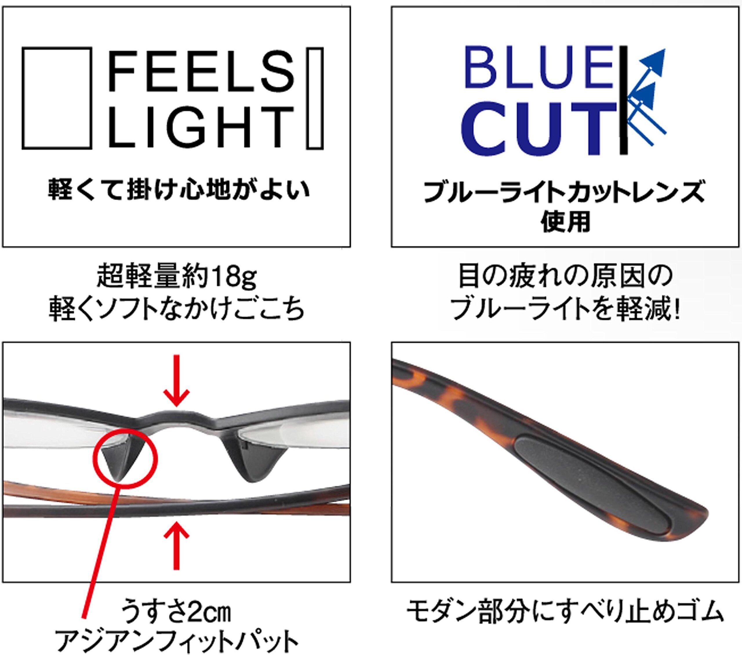 メイガン おしゃれ 老眼鏡 ブルーライトカット ブラック デミ 度数+1.50 (colorfulook 軽量 形状記憶 フレーム) 5561-15