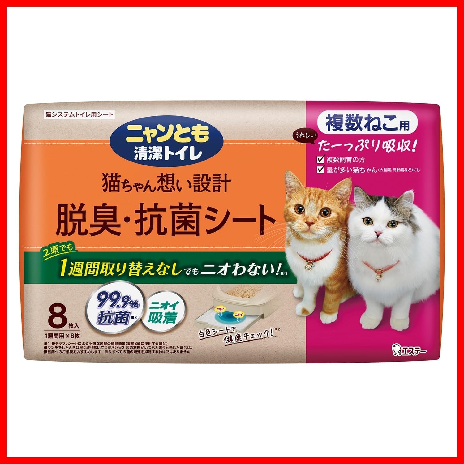 ニャンとも清潔トイレ [3つの脱臭成分で強力脱臭] 脱臭・抗菌シート 複数ねこ用 8枚 [猫用システムトイレシート] システムトイレ 猫用 トイレシート 消臭