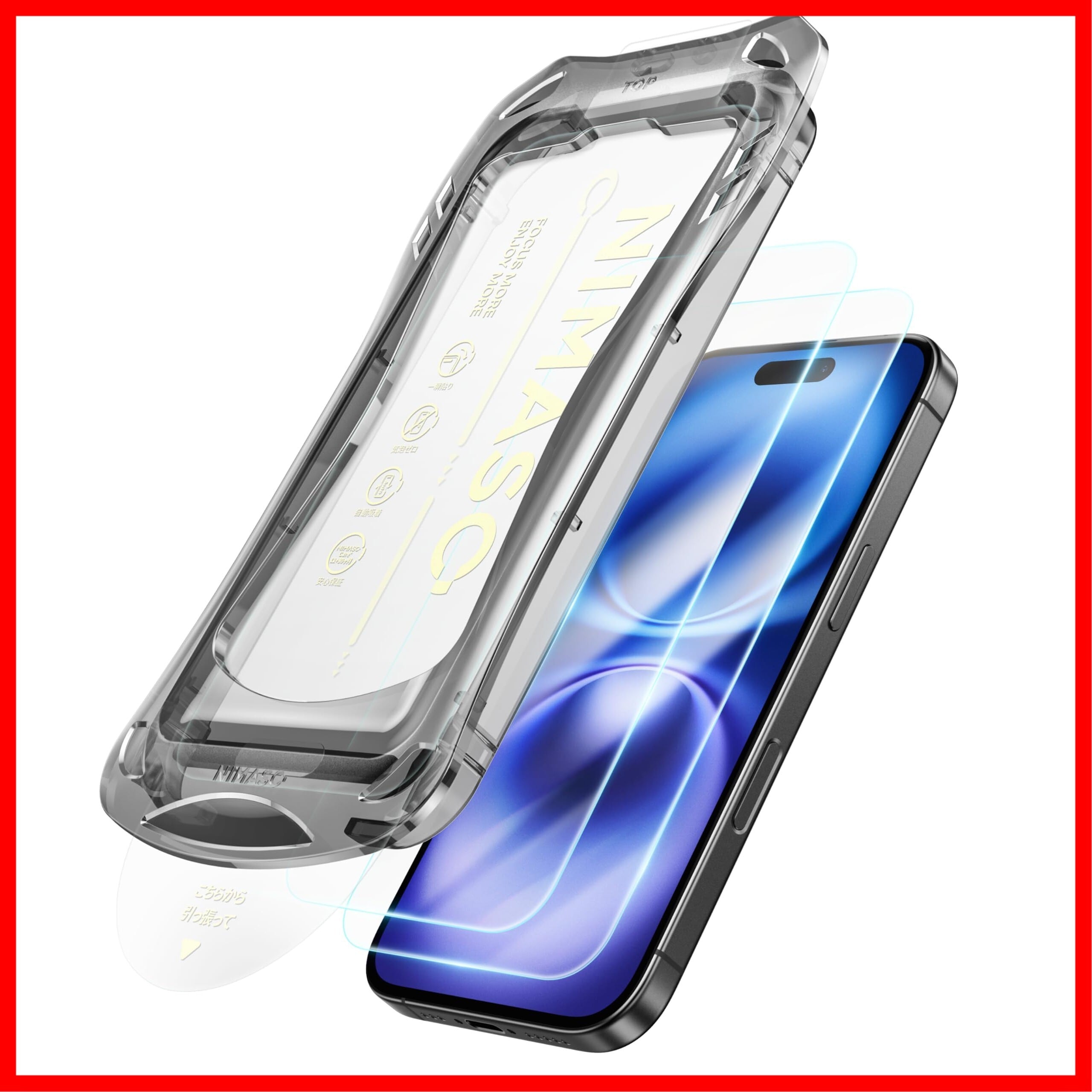 NIMASO ガラスフィルム iPhone 16 / iPhone 15 用 強化ガラス 自動除塵 保護フィルム 超簡単貼り付け 耐衝撃 指紋防止 ガイド枠付き 2枚セット アイフォン16 / アイフォン15 対応(6.1インチ) DSP24G1351 | hananoki