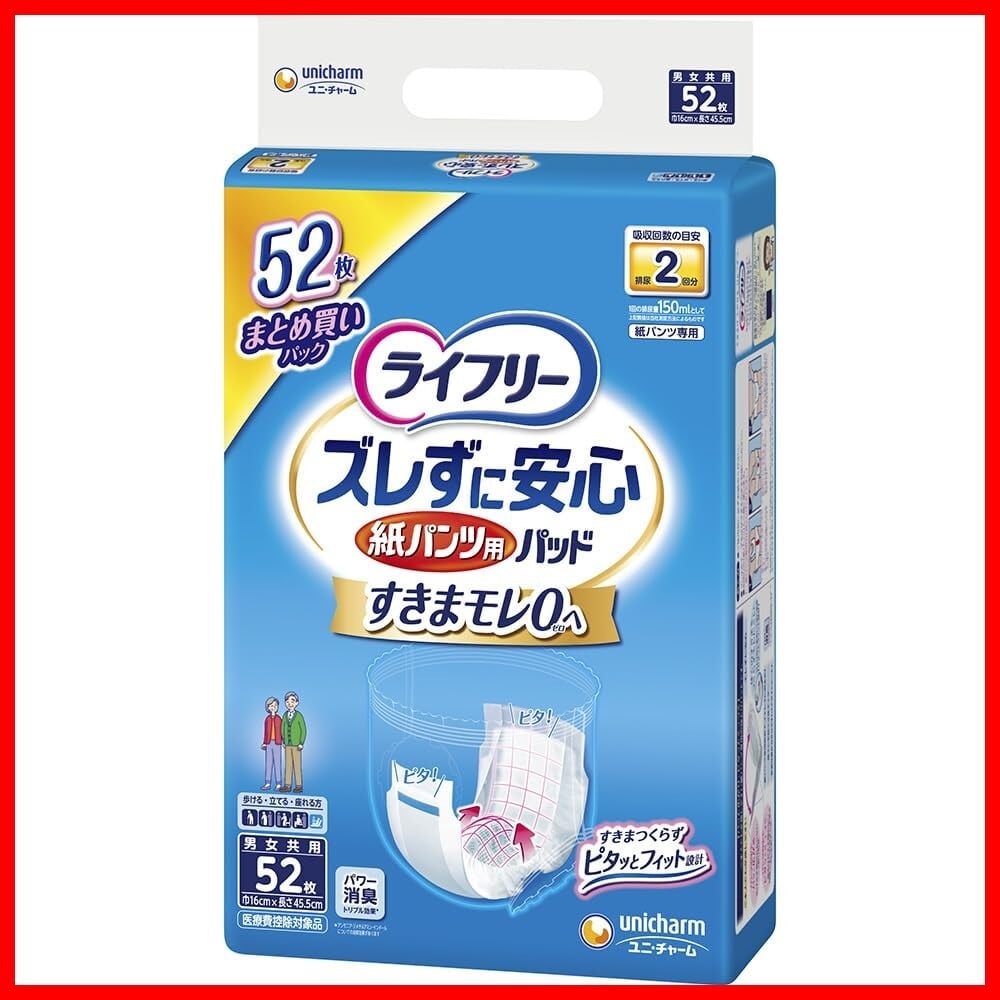 ライフリー パンツ用尿とりパッド ズレずに安心紙パンツ専用 2回吸収 ホワイト 52枚