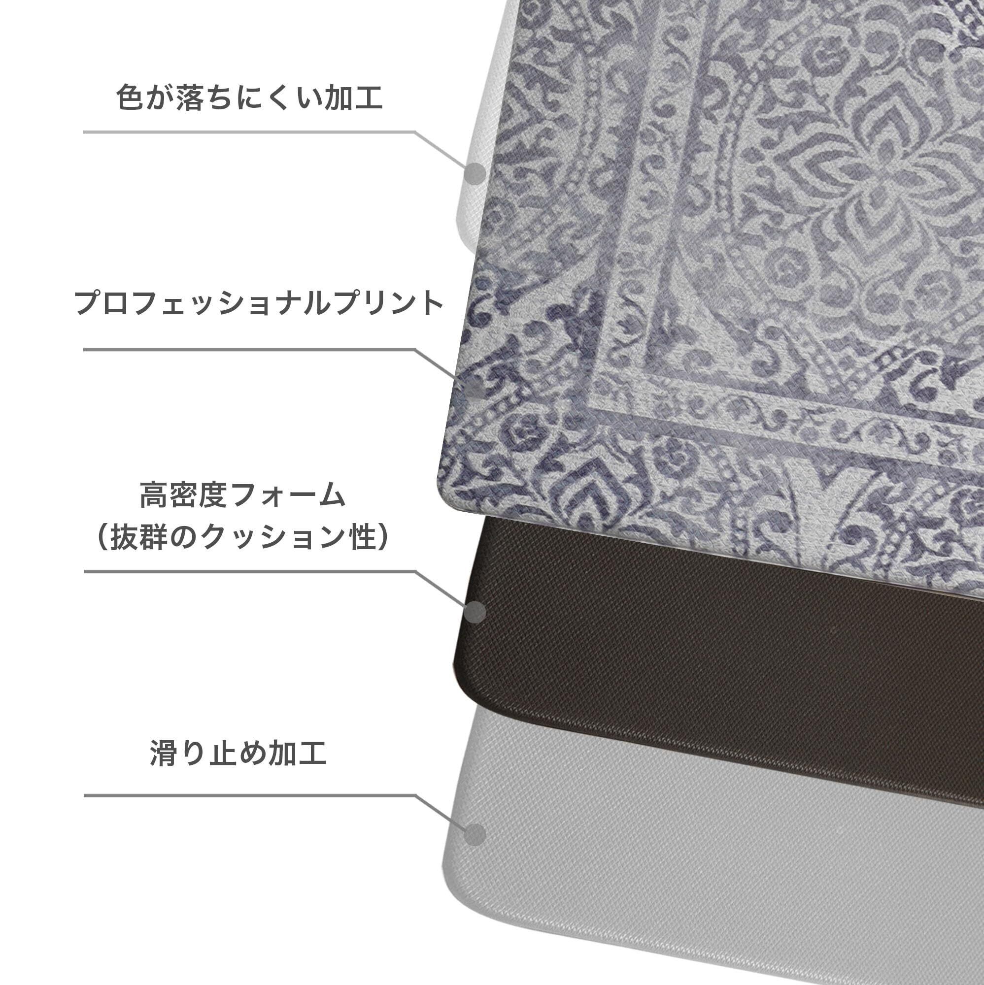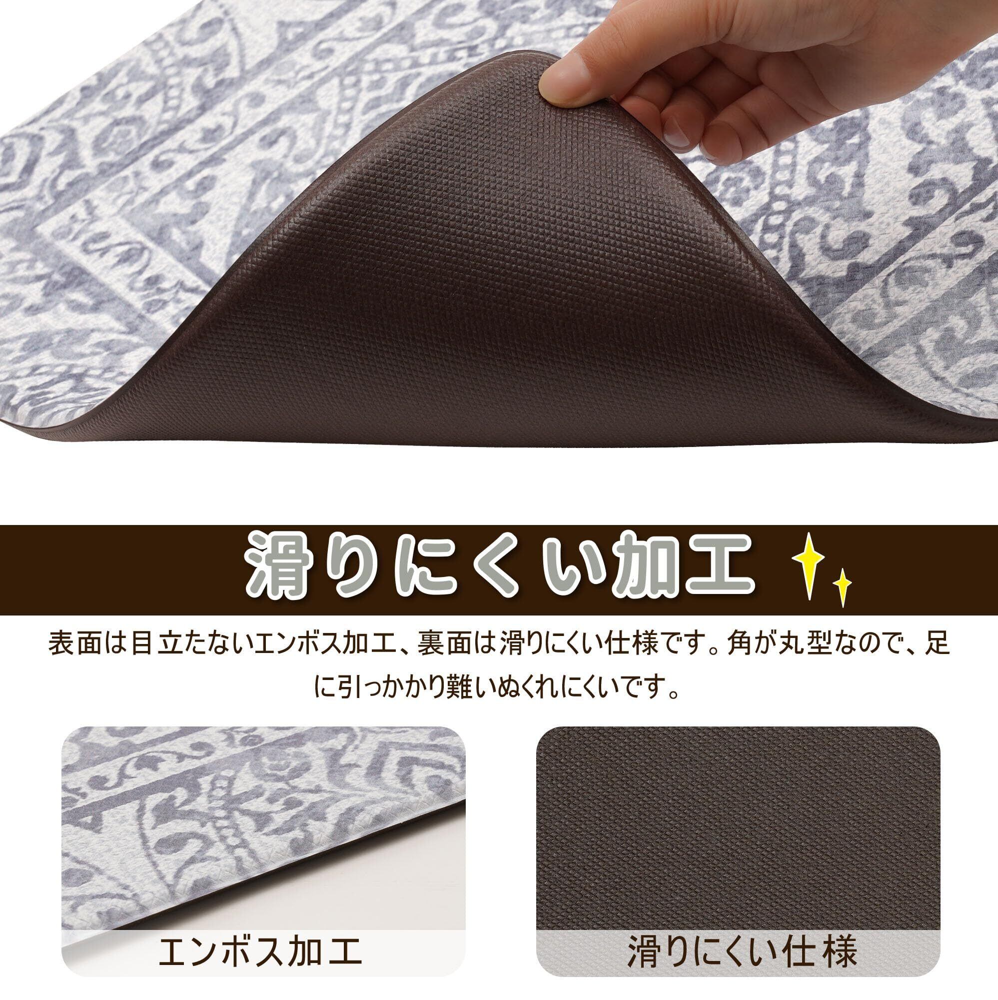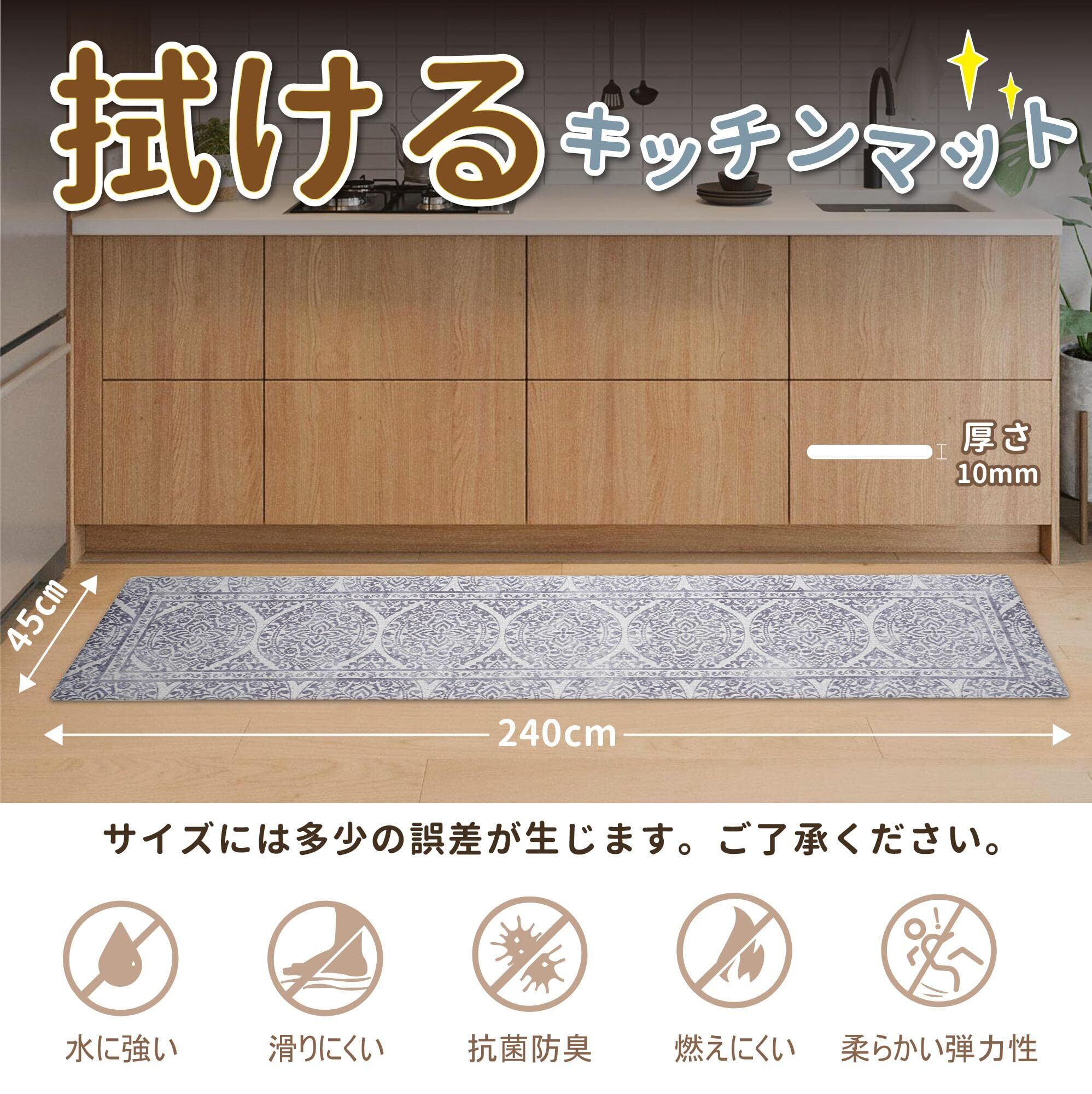 Ashmore キッチンマット 拭ける台所マ ット ずれない PVC 撥水 おしゃれ 滑り止め 抗菌 防炎 厚さ10mm お手入れ簡単 約45cm*240cm キリム グレー
