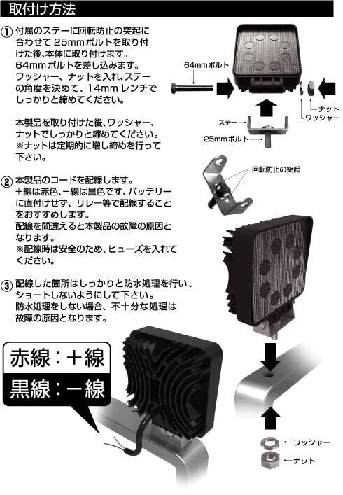 カシムラ(Kashimura) LEDワークライト角 8灯 24W 白色 1560lm 6000K ノイズ対策 IP67 DC12/24V NML-18