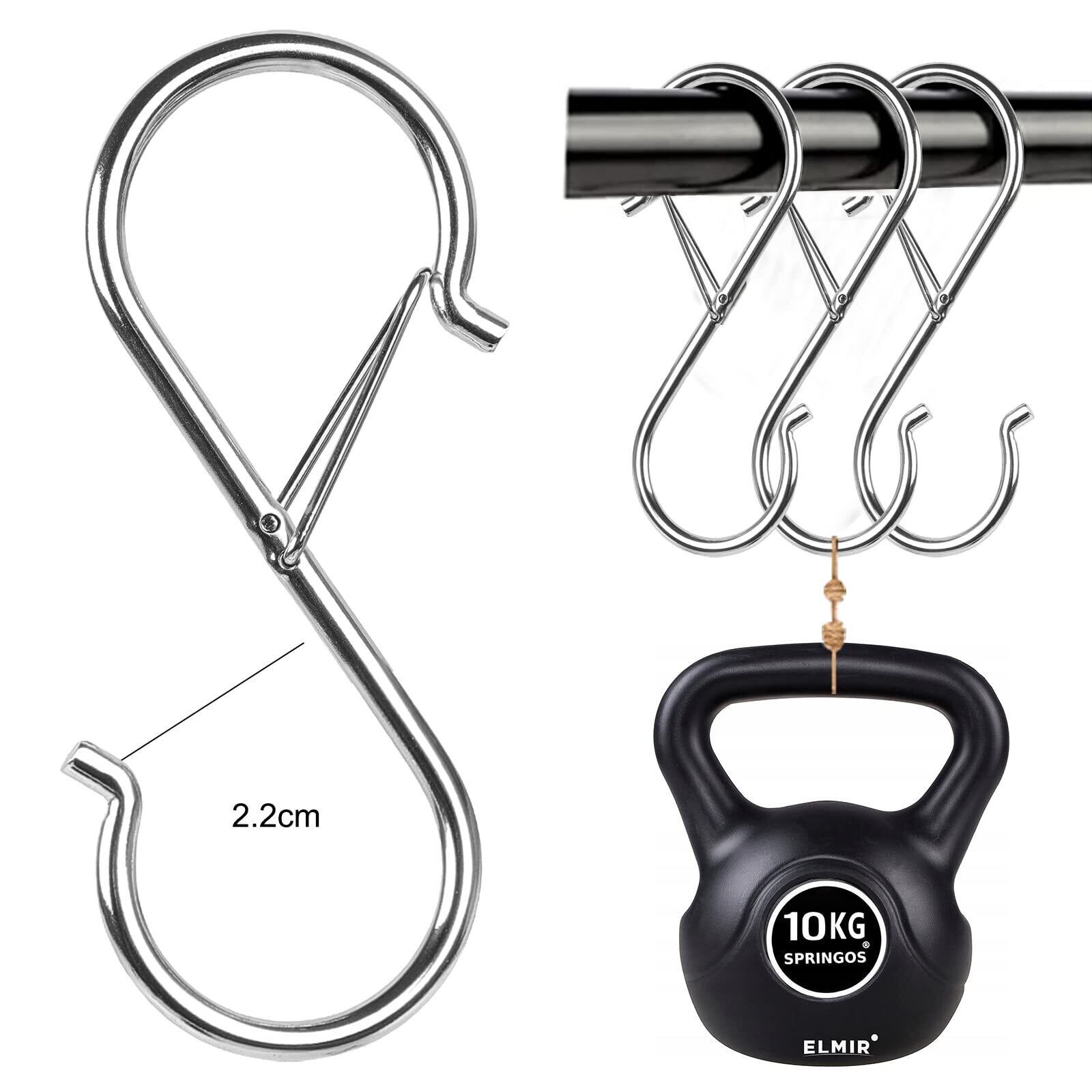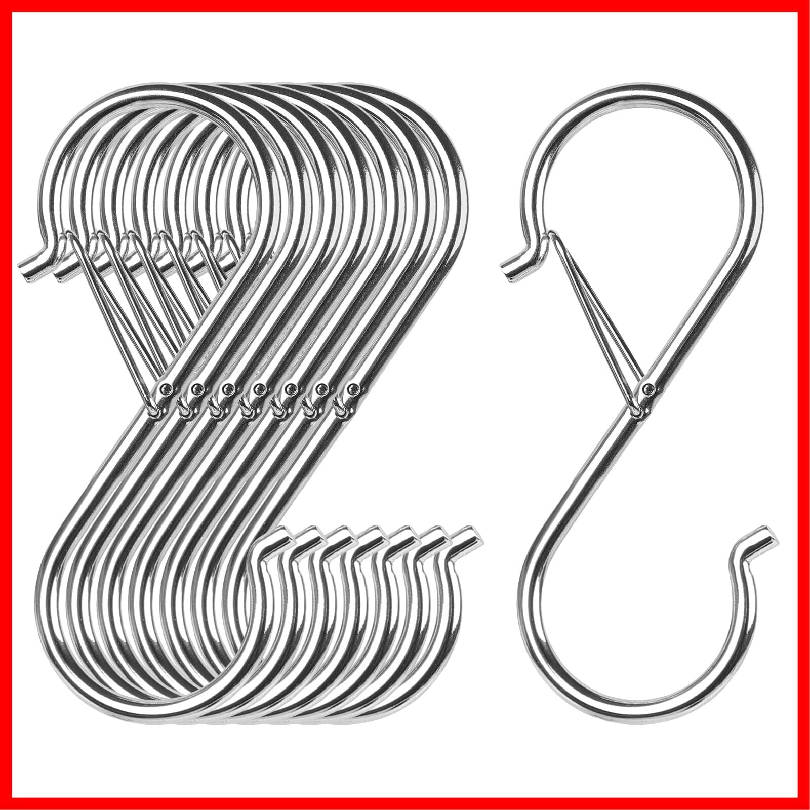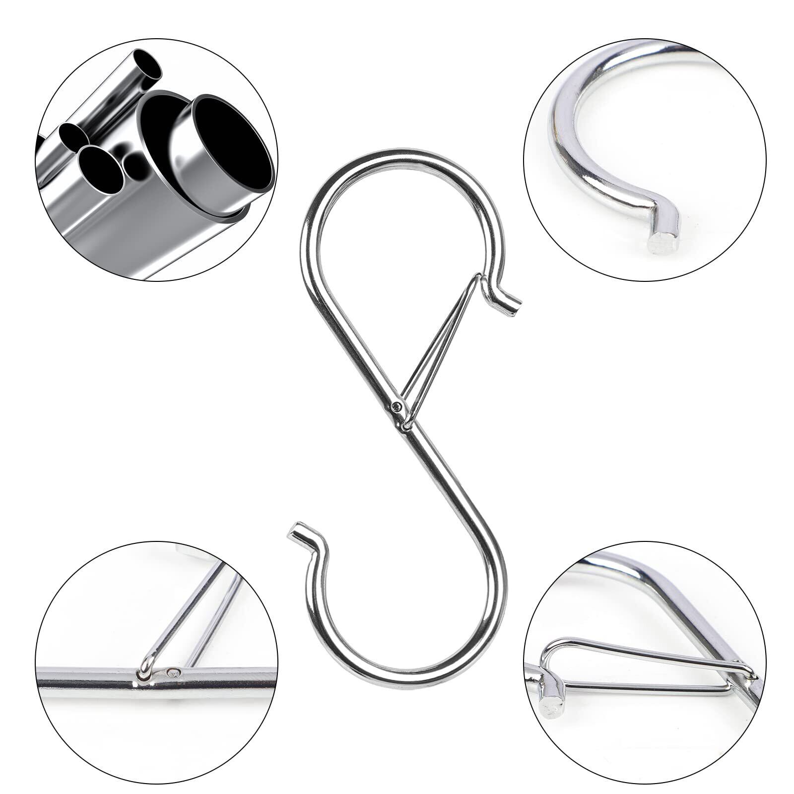 S字フック実用性:キッチン、台所収納、ヘラ、鍋、まな板、食器、回廊 、浴室、お風呂、クロゼットにも問題なく壁掛け収納に最適です。家の壁に穴を打つのが必要なし、釘、ネジや接着剤も不要です、S字フックを掛けるだけ簡単に使用できます。吊り下げた物体が落下し、製品の安全性能を向上させるのを防ぐために、通常のSフックに基づいて安全バックルを追加します。